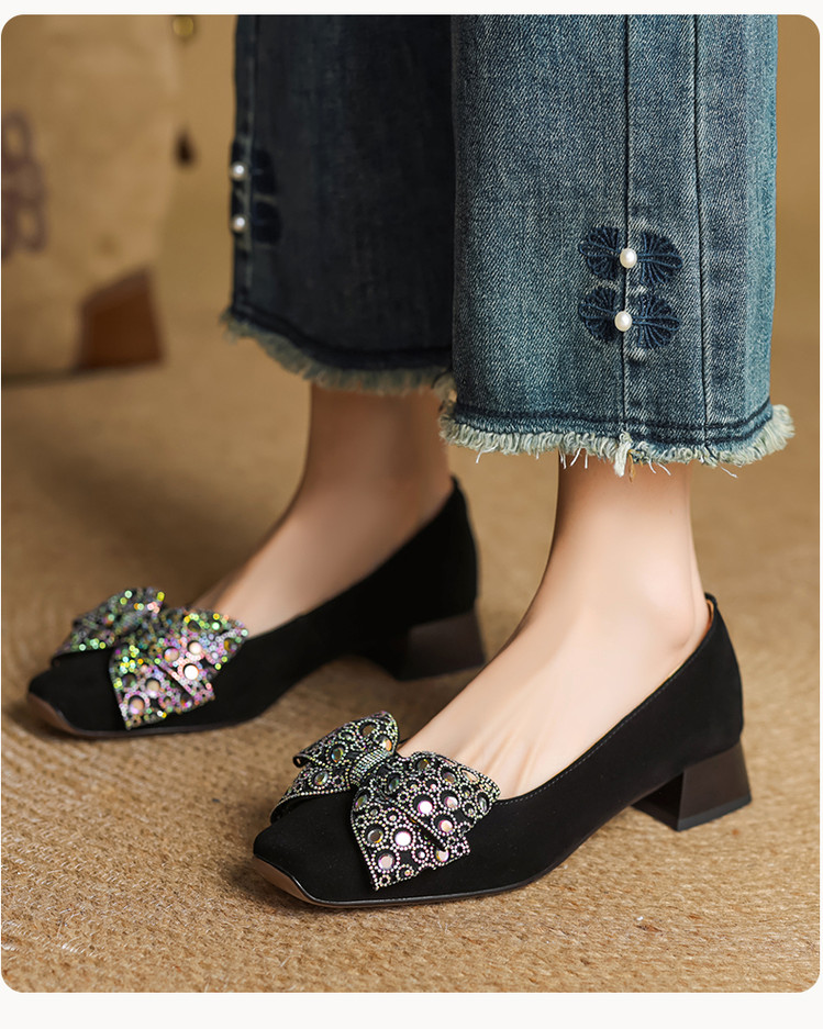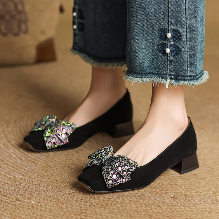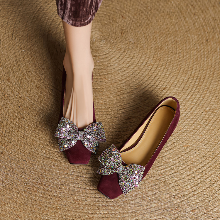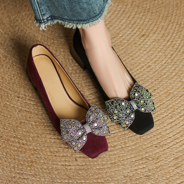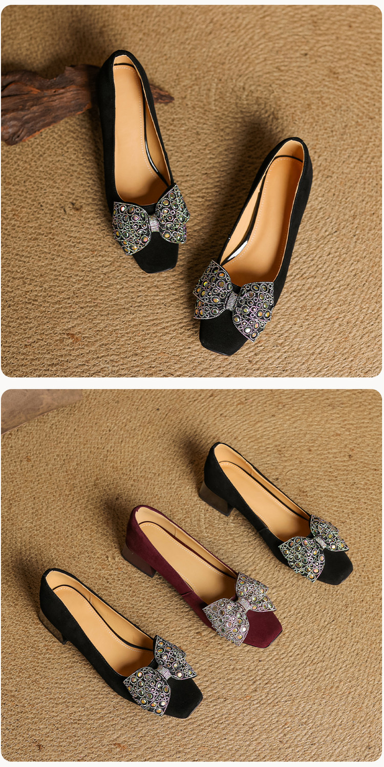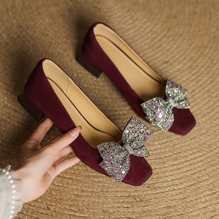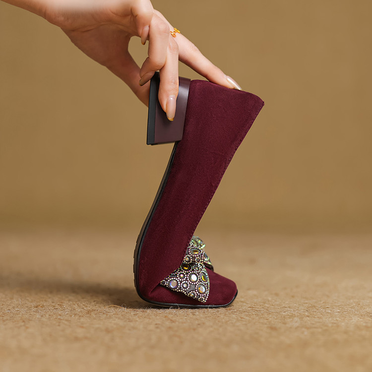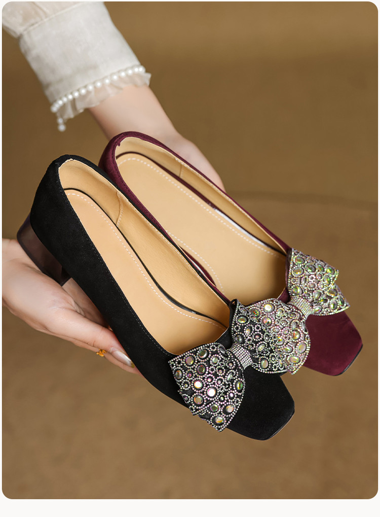 【货 号】75-2【鞋面材质】羊翻绒【内里材质】 头层猪皮 【垫 底】猪皮【跟 高】3cm【鞋底材质】牛筋底【颜 色】黑色 酒红色【尺 码】34 -- 40 (大小定制不退换)