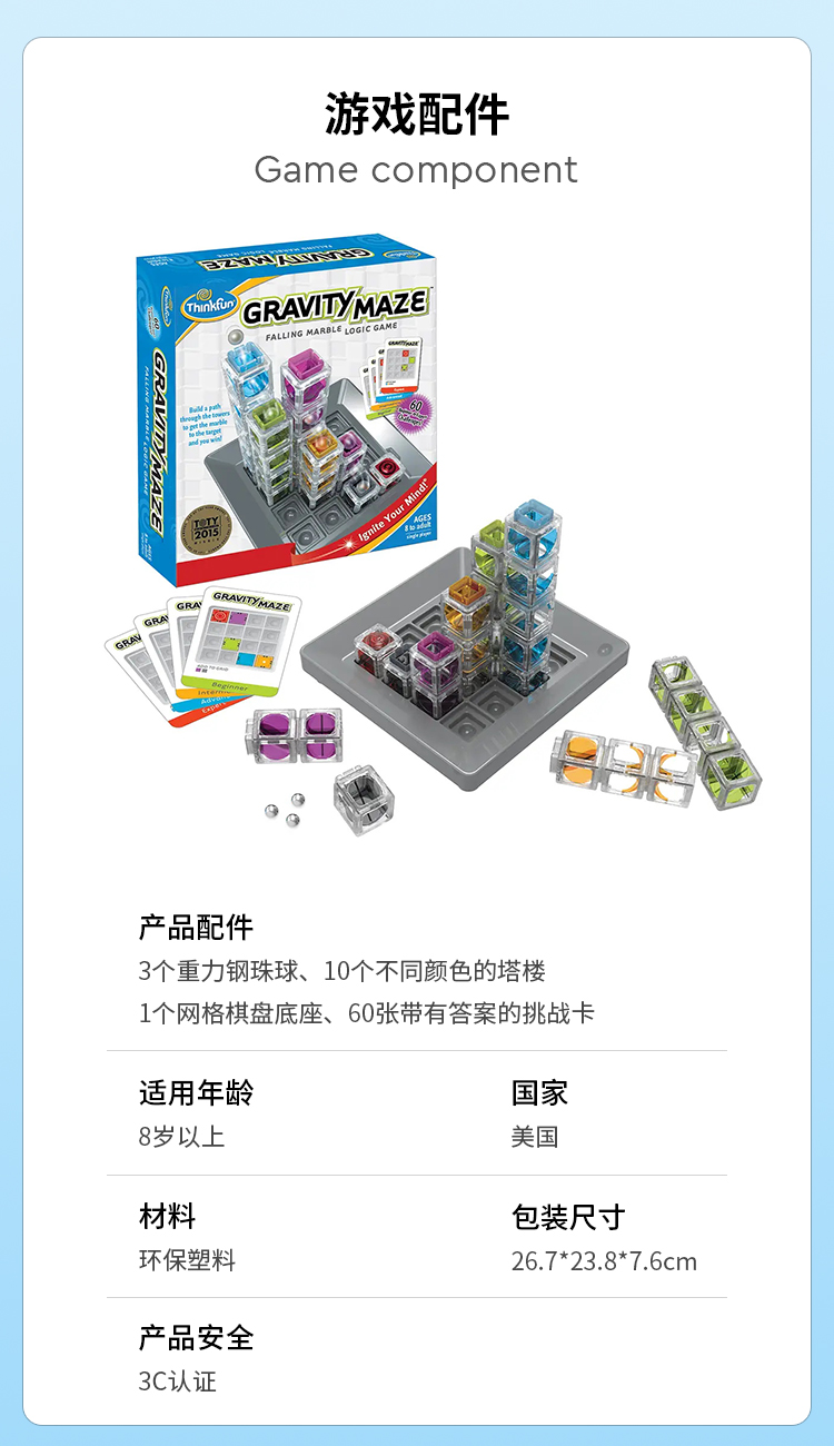Tinkfun 重力迷宫 桌游 适合年龄8+ 益智游戏 美国游戏 76433