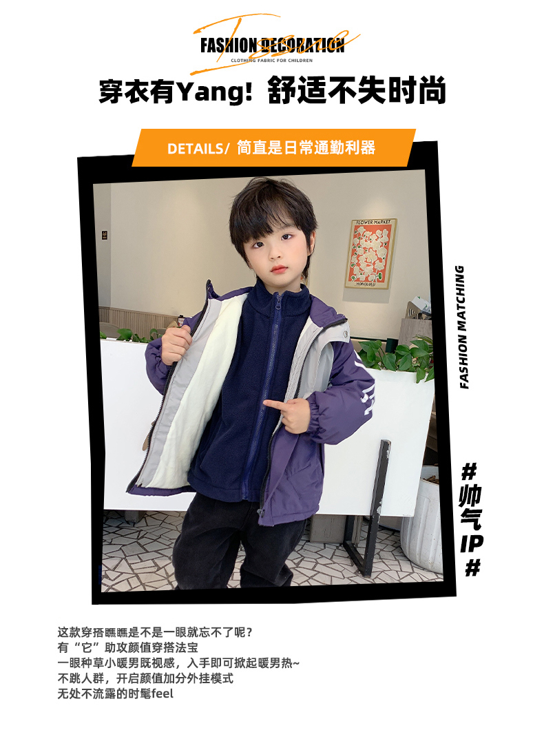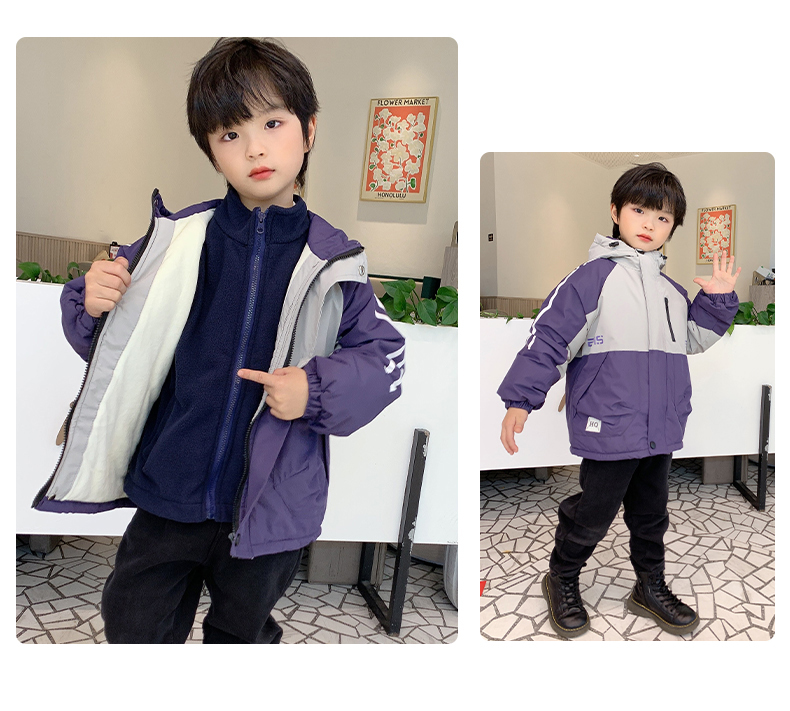【加绒+加厚+加棉】【一件过冬,防风聚暖】冬季新款儿童加厚夹棉三合一两件套冲锋衣抓绒内胆防风户外外套冲锋衣