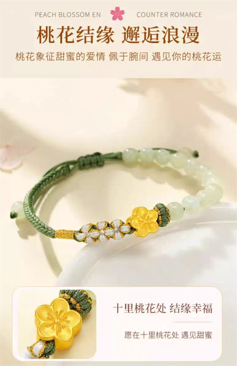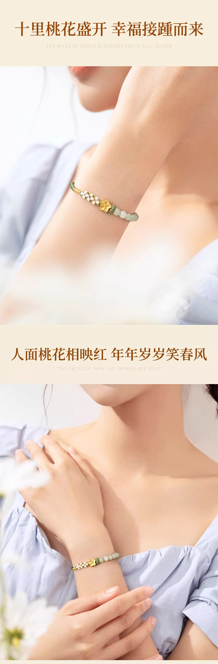 【和田玉桃花手链】女生轻奢小众国风新中式手串女款手绳礼物自戴都可以!