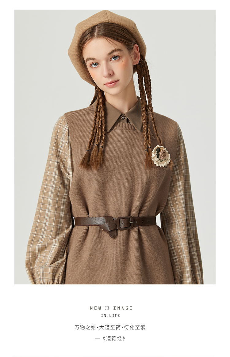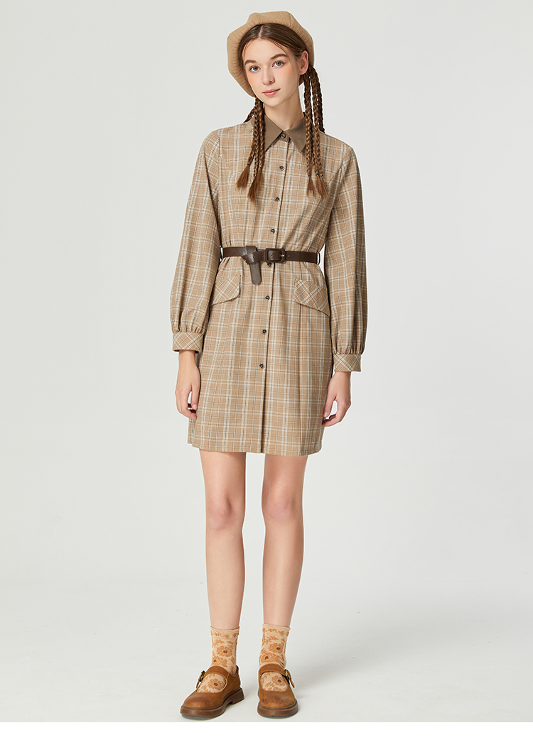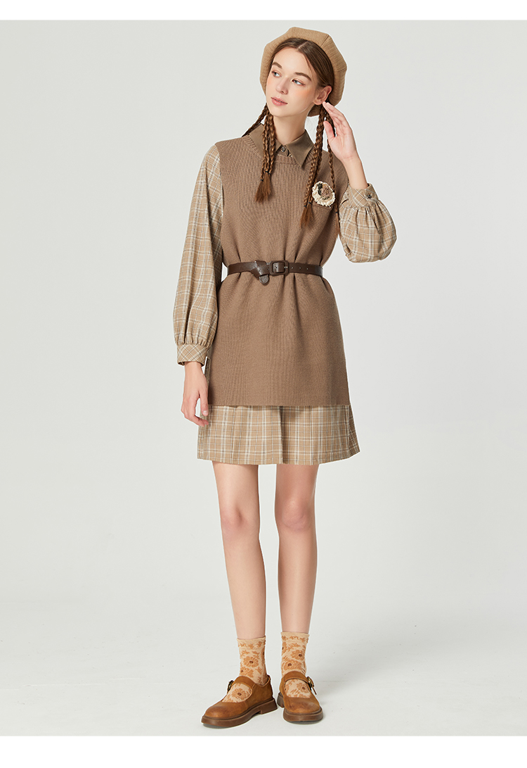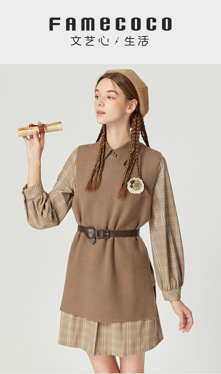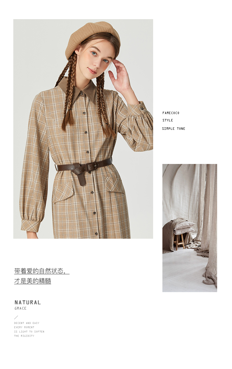 famecoco范可儿减龄漂亮洋气套装秋收腰格纹衬衫裙两件套D216EA303