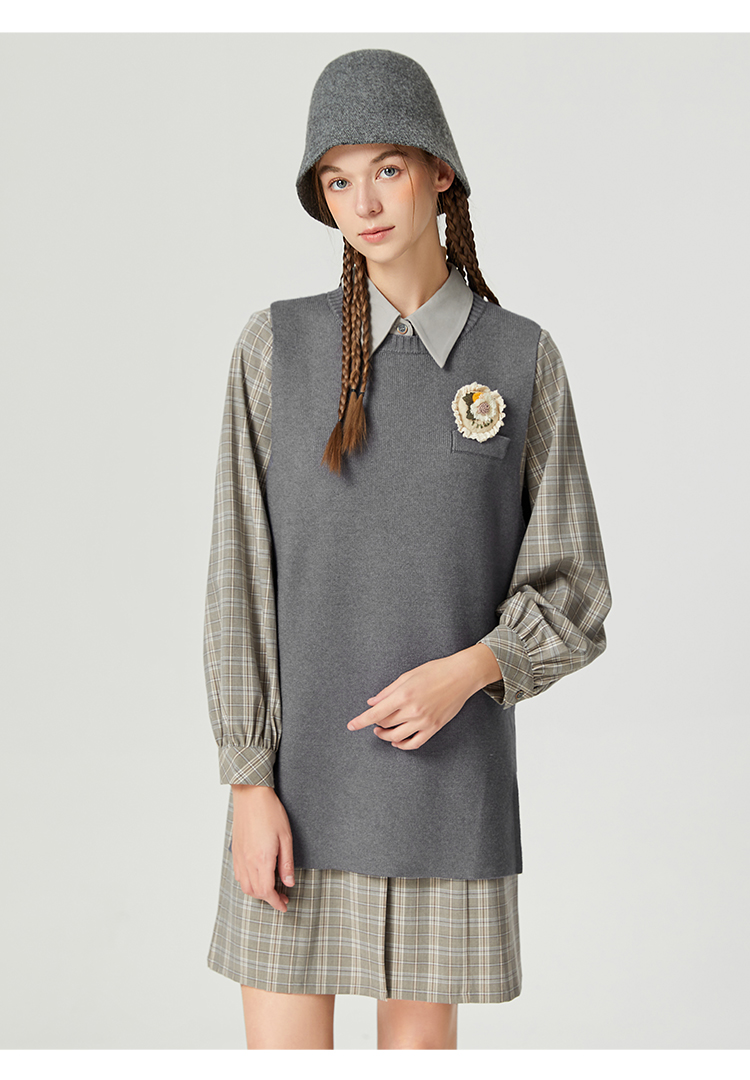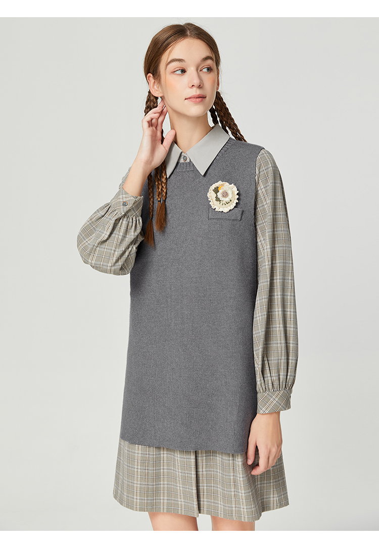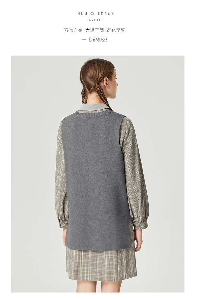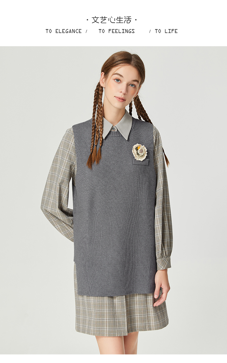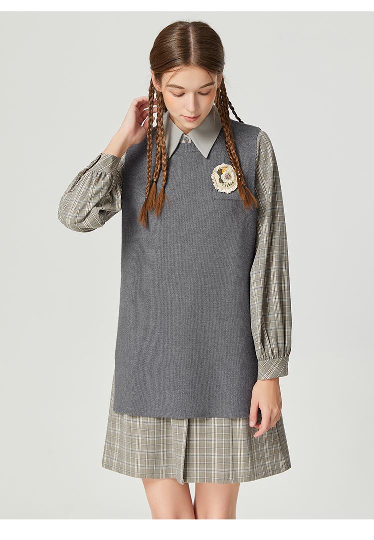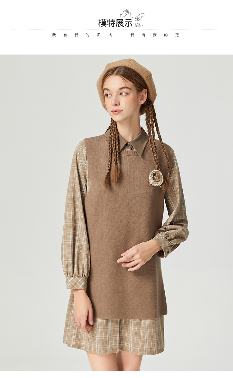 famecoco范可儿减龄漂亮洋气套装秋收腰格纹衬衫裙两件套D216EA303