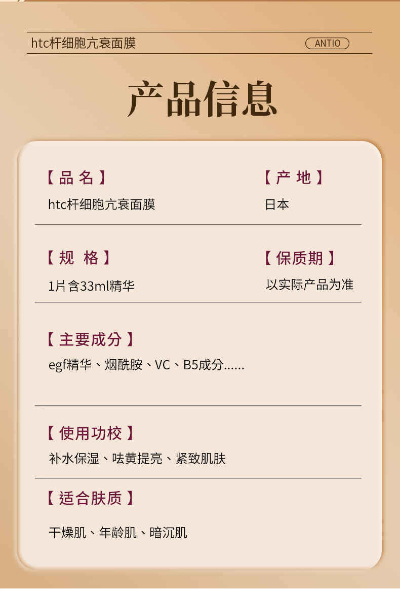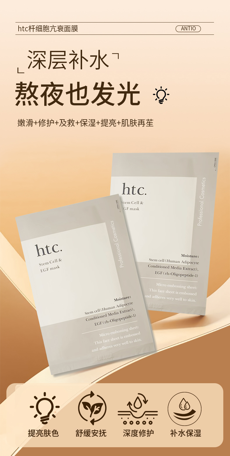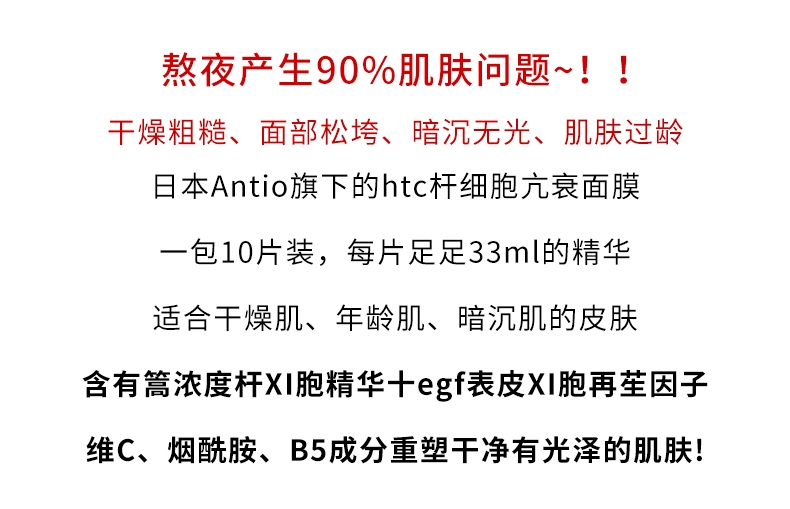 日本本土 院线ANTIO新品htc面膜10片 高浓度补水保湿提亮修复弹力抗衰