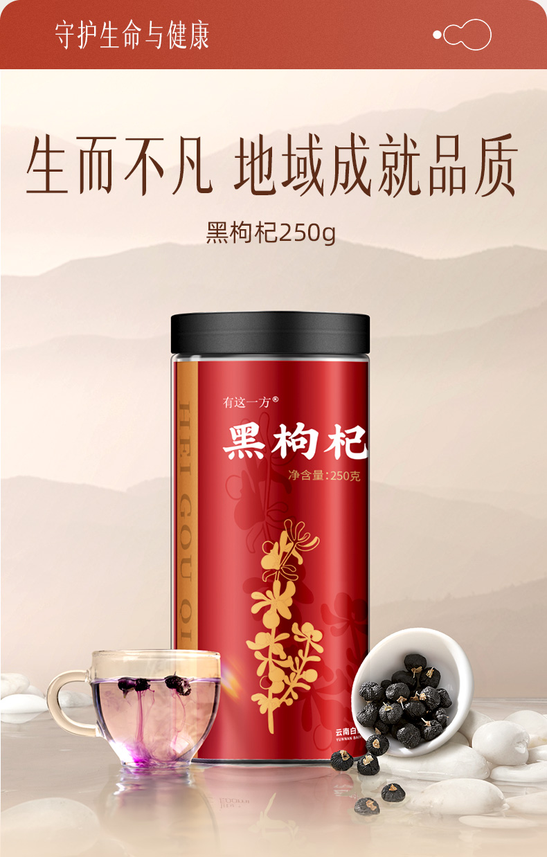 【官方正品】云南白药有这一方黑枸杞250g青海原产地黑果枸杞干泡水富含花青素