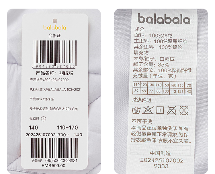 【商场同款】巴拉巴拉童装女童羽绒服2025新款暖外套上衣冬假两件