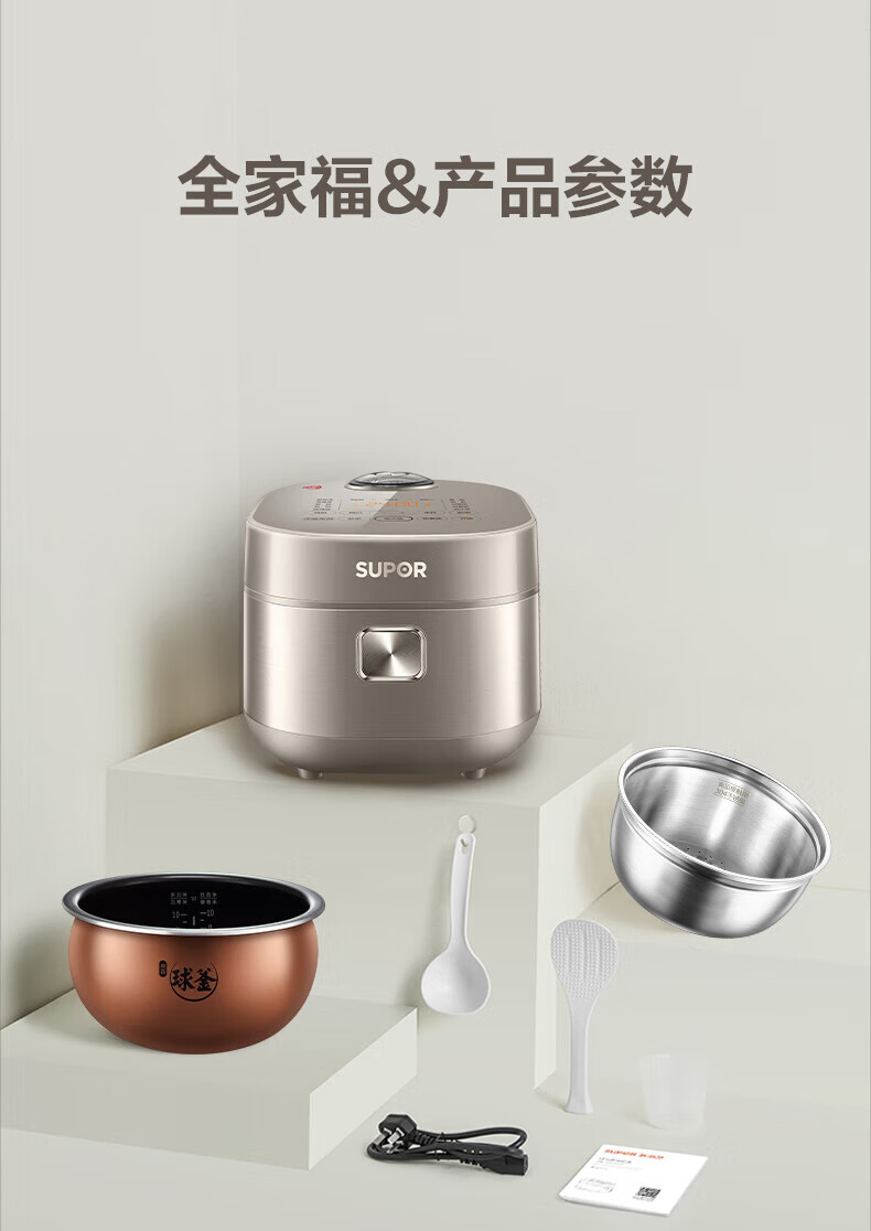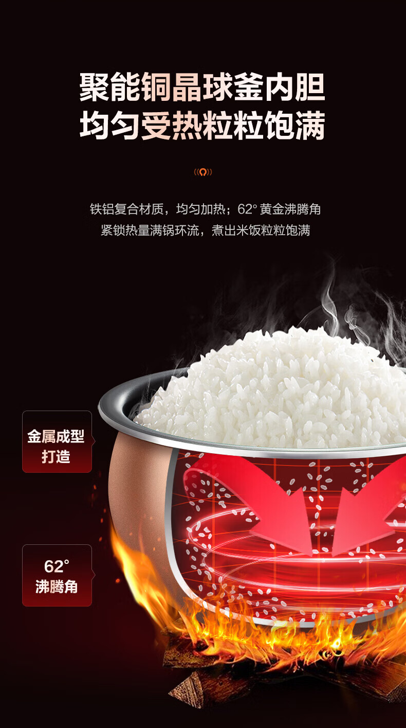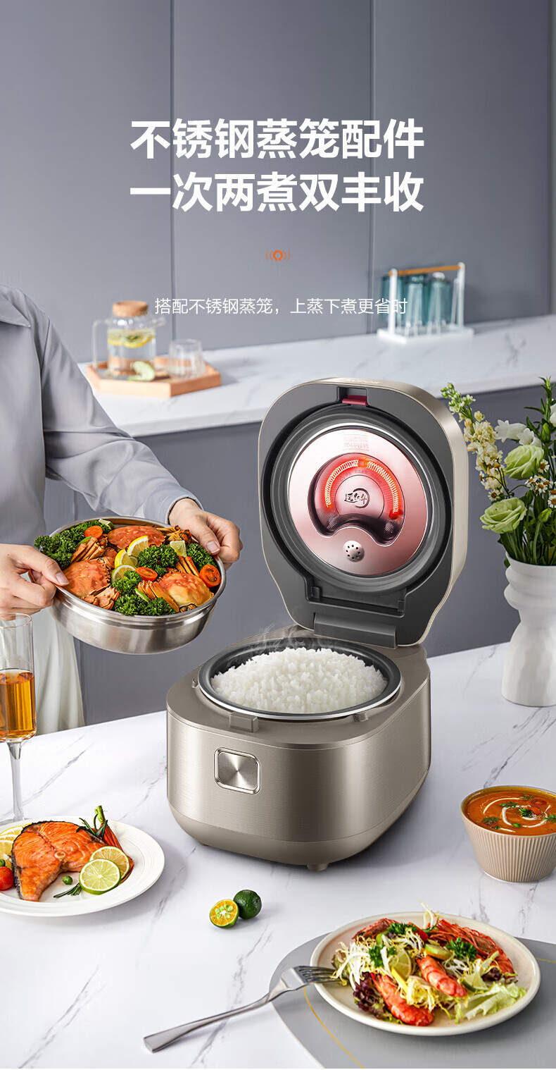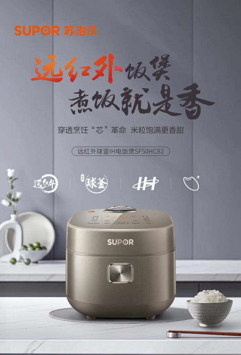苏泊尔(SUPOR)5L电饭煲远红外穿透加热铜晶球釜IH电磁加热多功能家用智能电饭锅2-10人适用 SF50HC82 流光金色