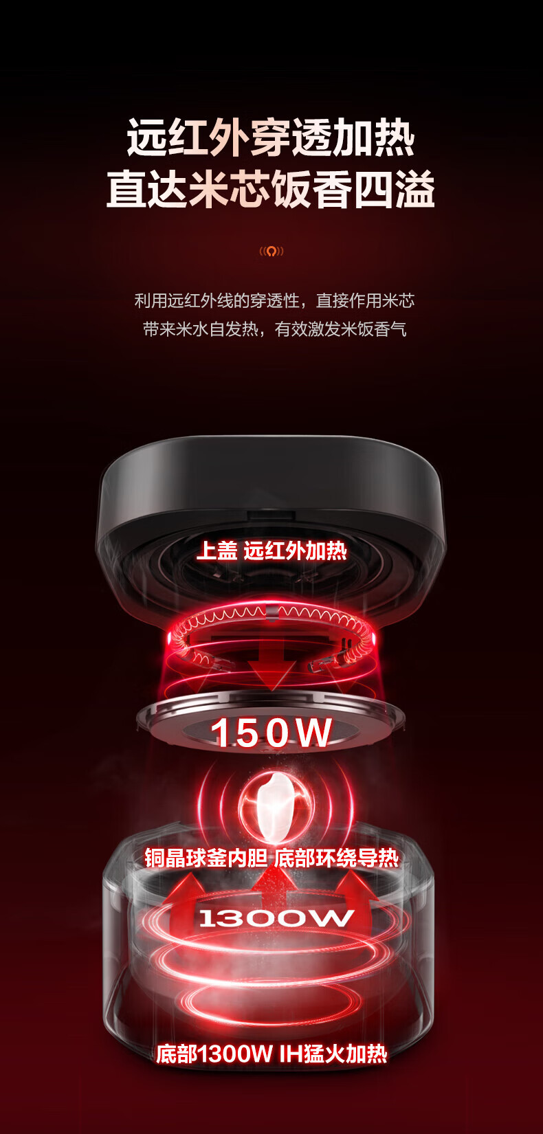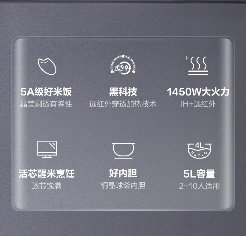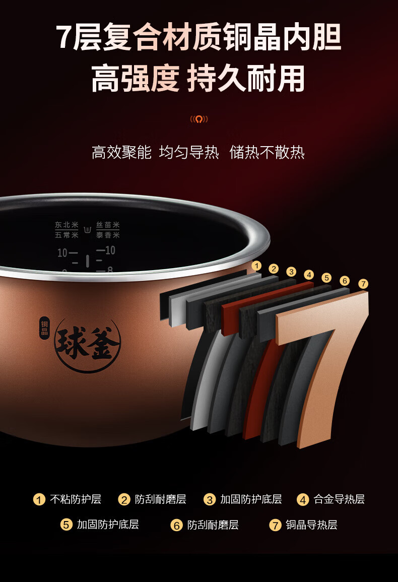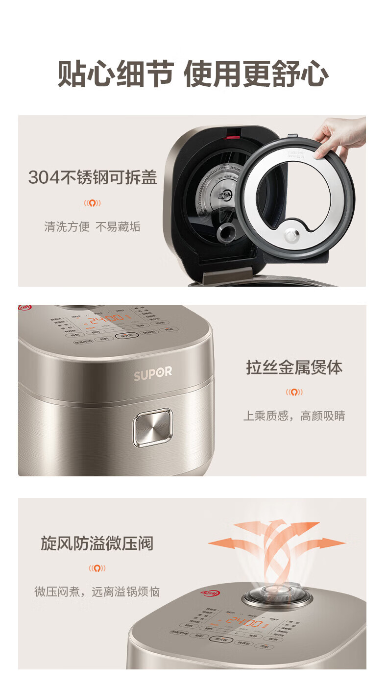苏泊尔(SUPOR)5L电饭煲远红外穿透加热铜晶球釜IH电磁加热多功能家用智能电饭锅2-10人适用 SF50HC82 流光金色