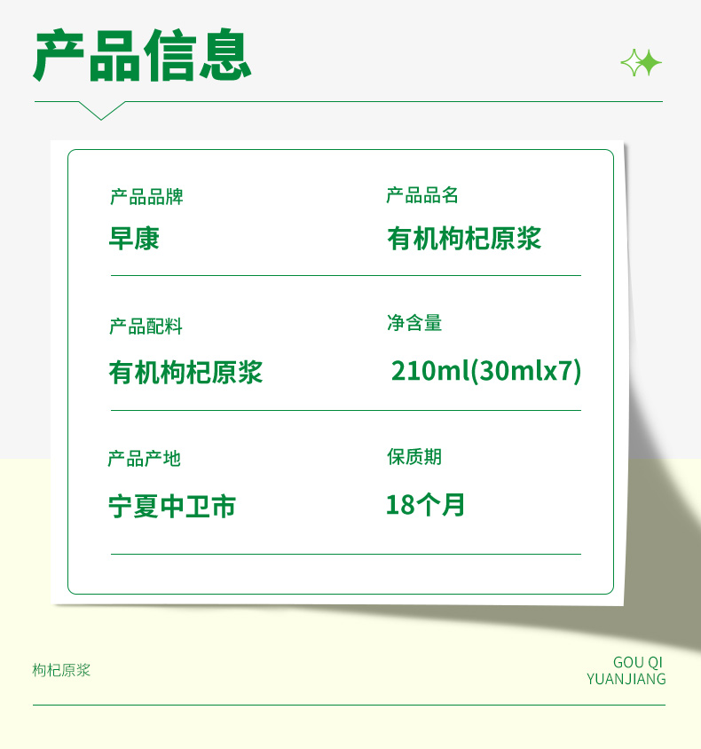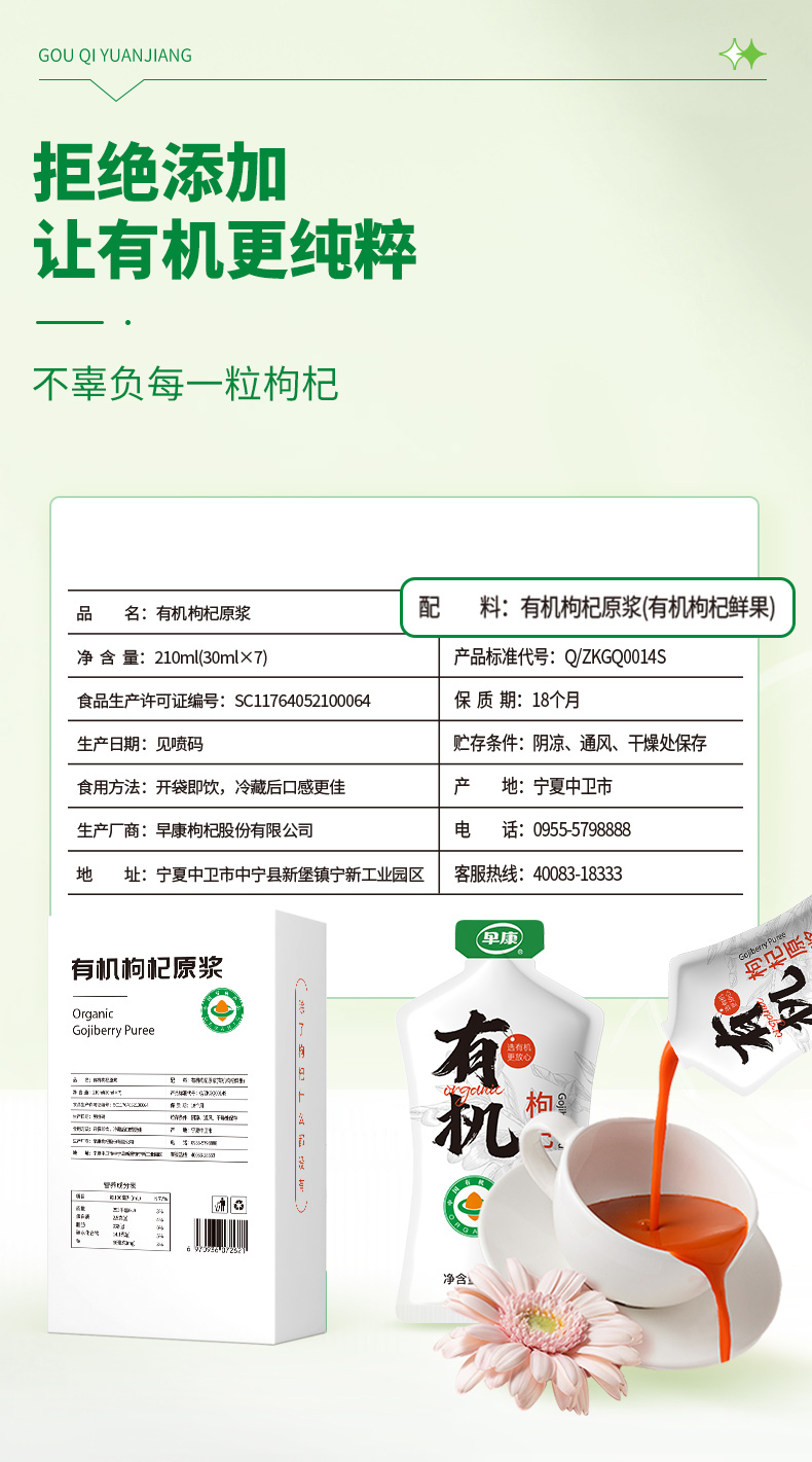 【有机】早康有机枸杞原浆210ml(30ml*7袋)