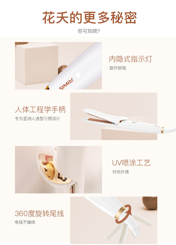 雷瓦(RIWA) 卷直发器 防烫卷发棒 卷发器 栀子白 RB-8311 商品图2