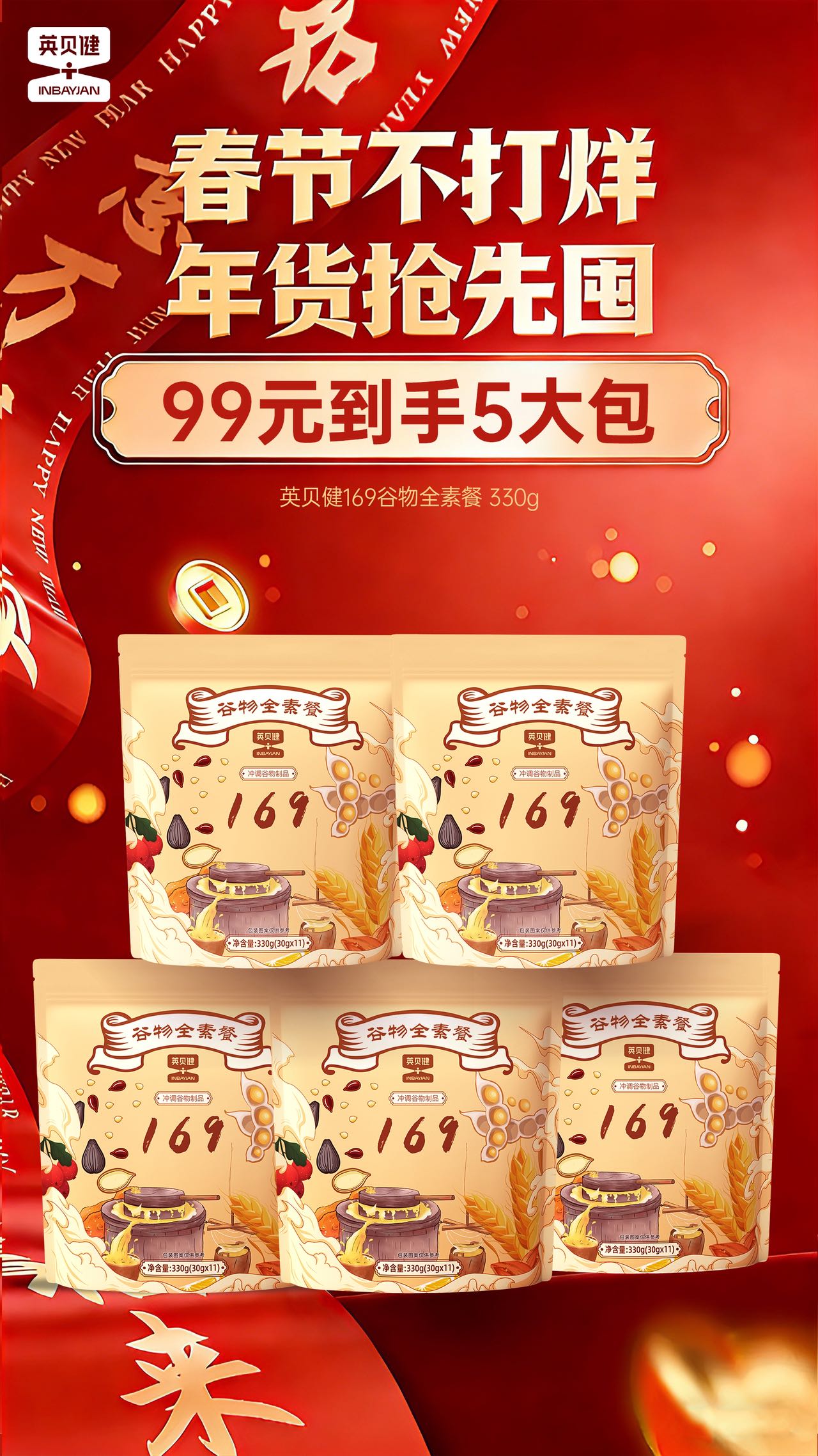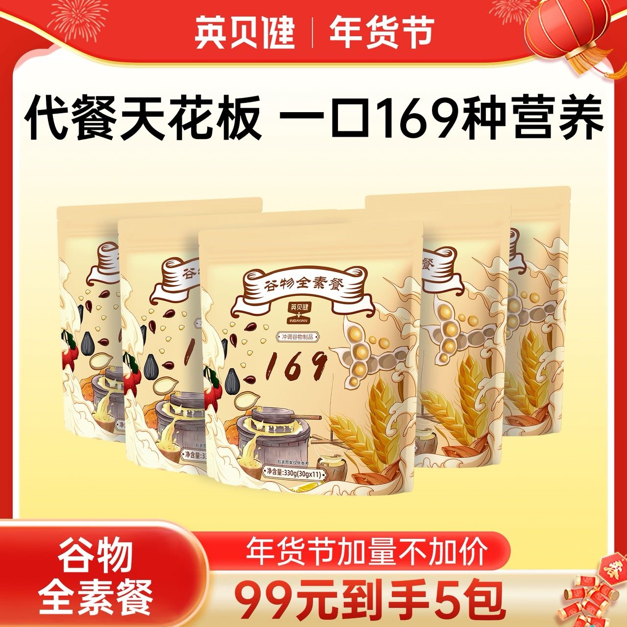 🌸年货节抢🧧英贝健代餐天花板‼️【英贝健谷物全素餐】❾❾到手🉐5️⃣包!!太太太划算了💥 一顿还不到2元!吃下169种自然食材🥣