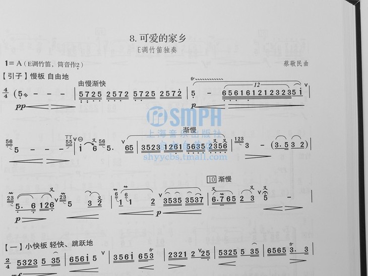 书稿是著名竹笛教育家、演奏家作曲家,南京艺术学院教授蔡敬民根据长年教学实践,对于笛子教学、演奏的经验总结,是一部由他本人创作的笛子曲集汇编。他是中国第一批竹笛教授,第一位竹笛研究生导师,并研制出了新竹笛。原稿共分三部分:上篇、中篇以及下篇,并附有附录,书稿以曲谱为主,五线谱、简谱兼用,独奏谱、伴奏谱兼收,形式多样,题材丰富,附文字简介和部分作品现场、历史音频。书稿适合竹笛专业学生和爱好者教学、演奏使用,对传承、繁荣竹笛教学、演奏与研究具有积极的推动作用和实用价值