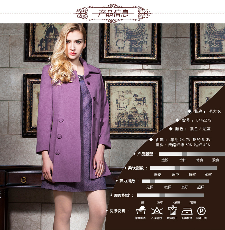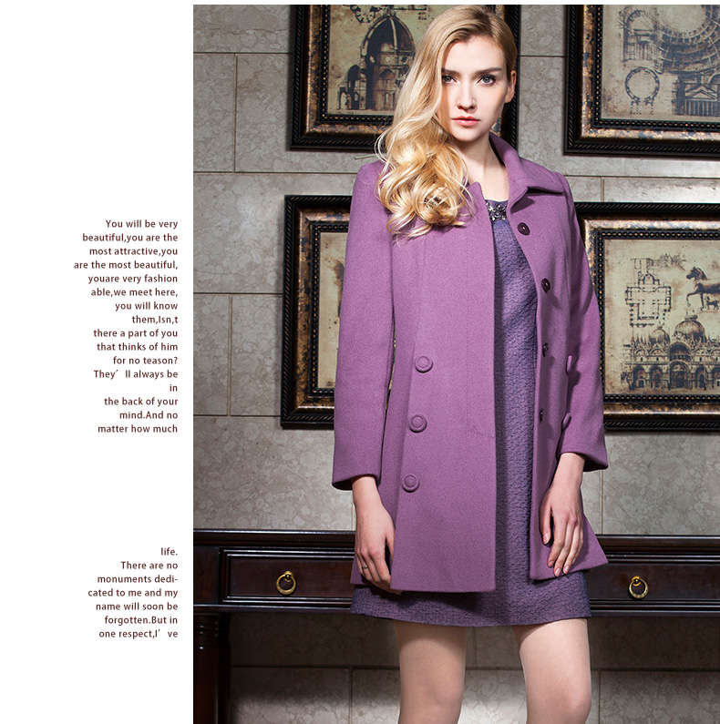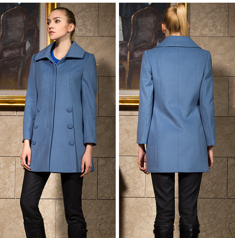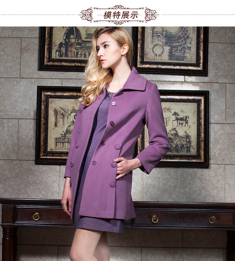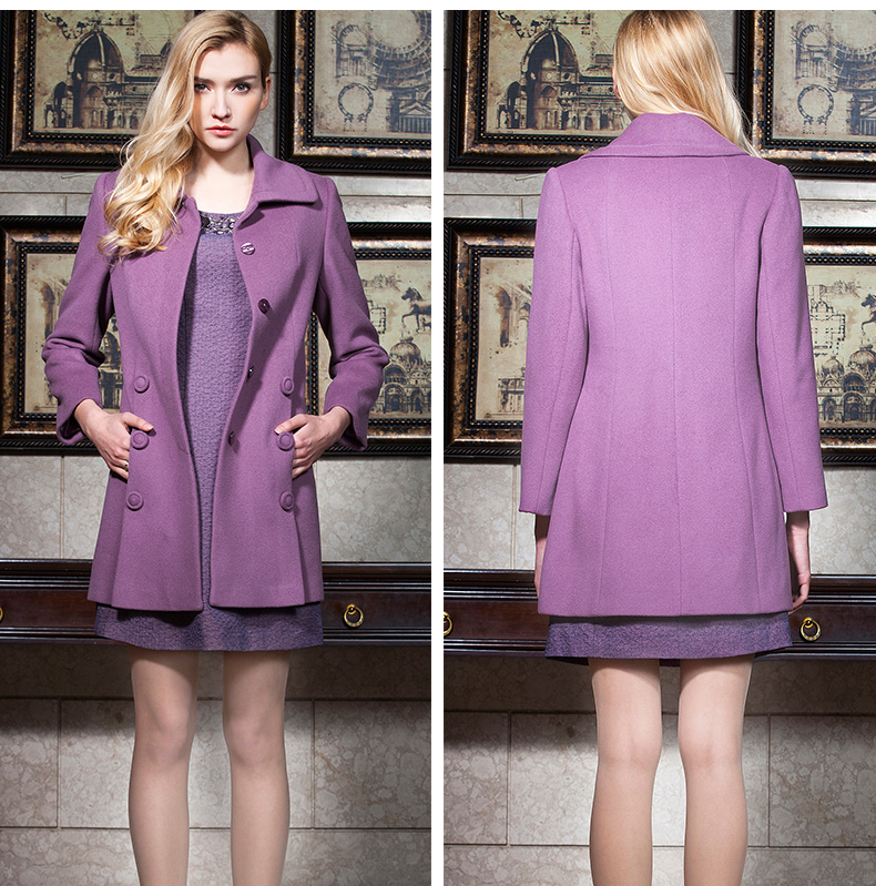佐尔美春女装纯色羊毛外套修身显瘦女中长款翻领毛呢大衣E44ZZ72