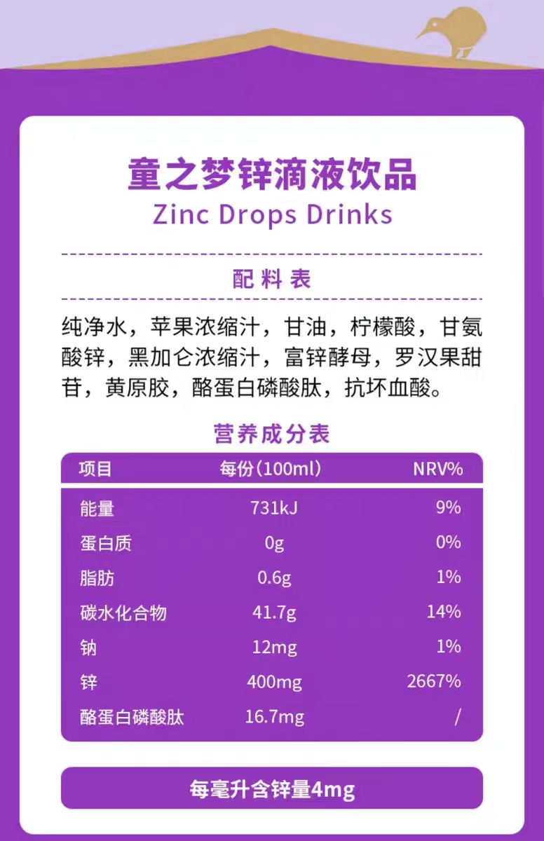 新西兰原装进口滴剂 童之梦酵母锌双锌CPP