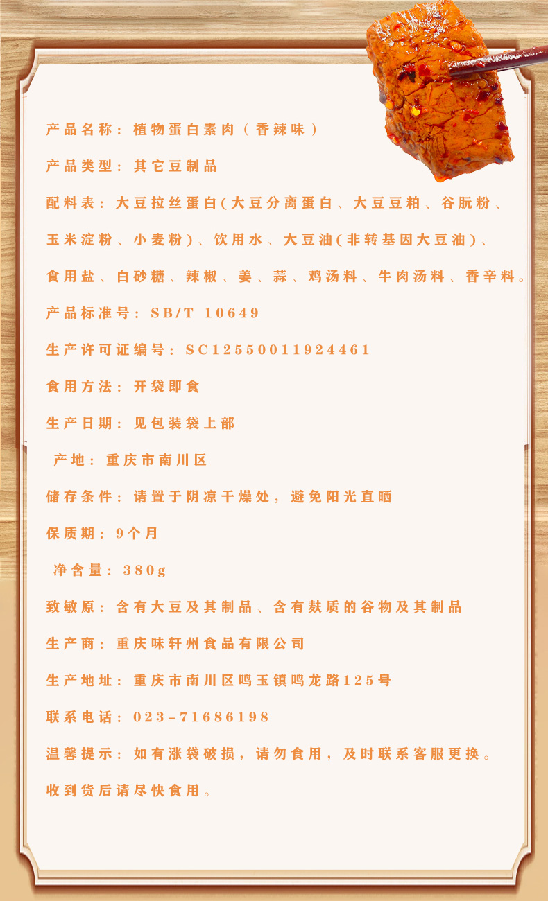 调皮娃娃植物蛋白素肉香辣味