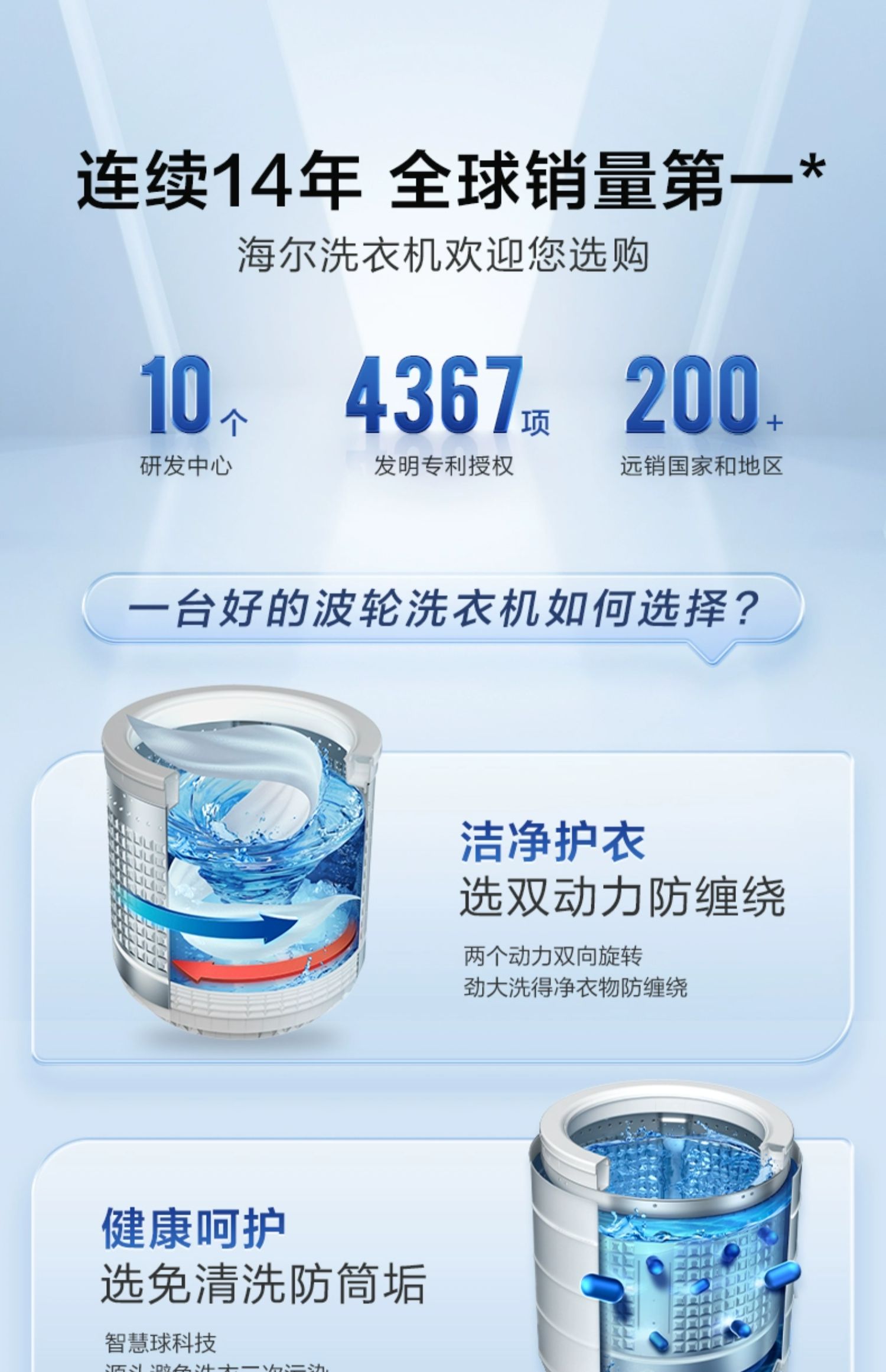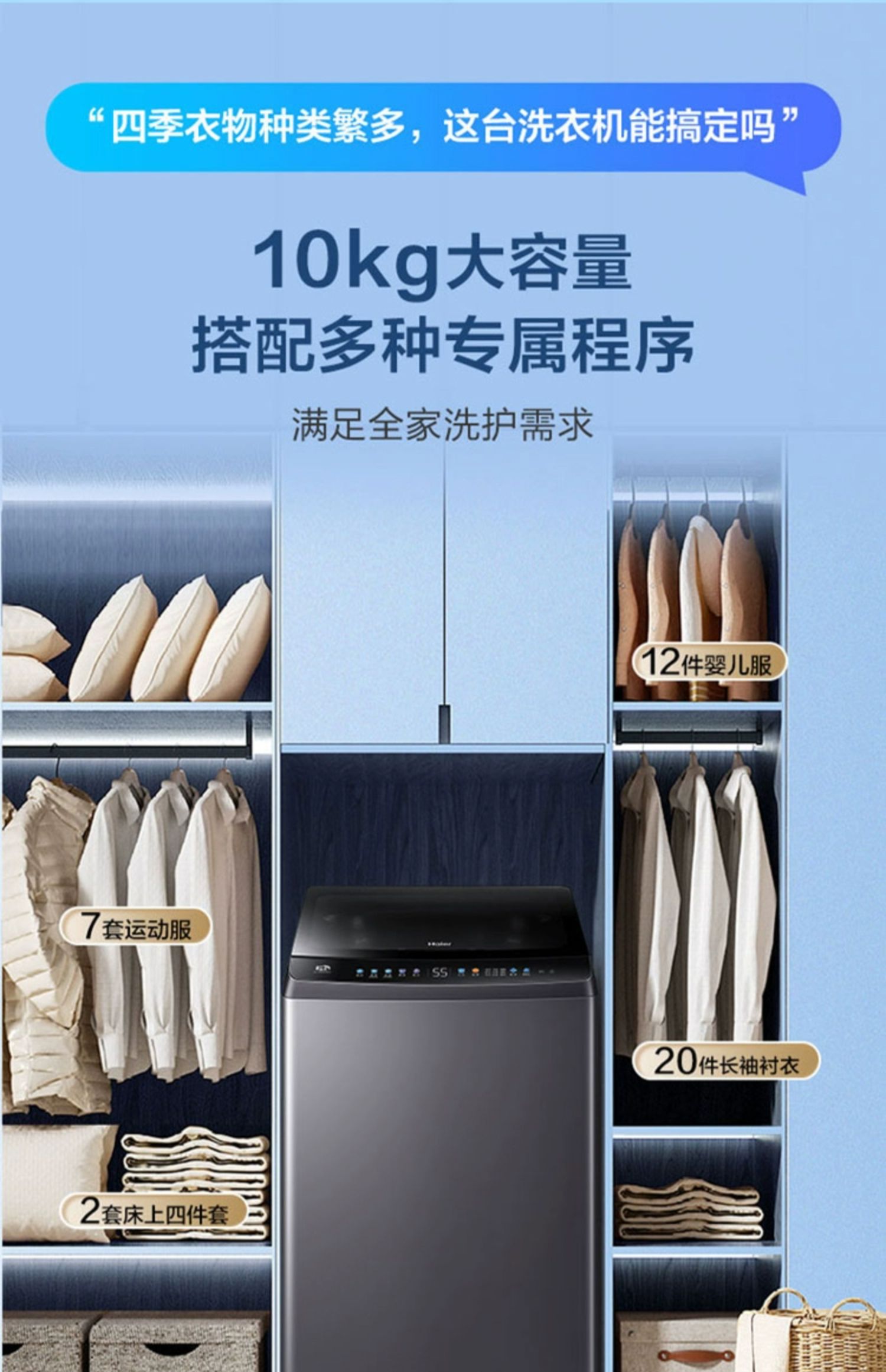 【双动力】海尔波轮洗衣机10kg家用全自动大容量直驱变频除菌Max5
