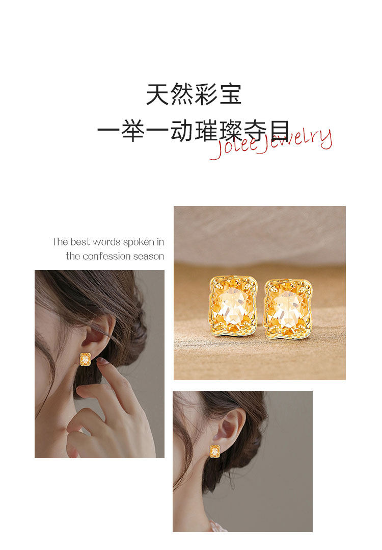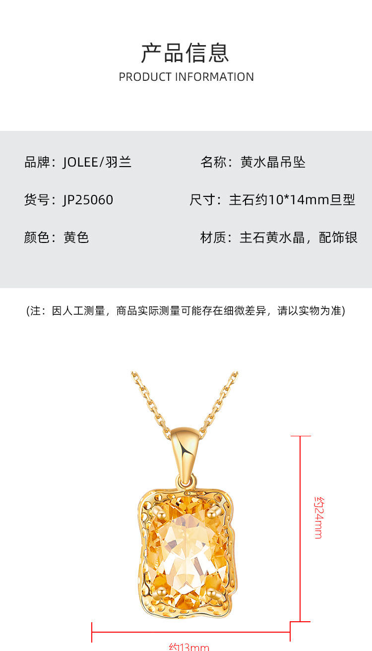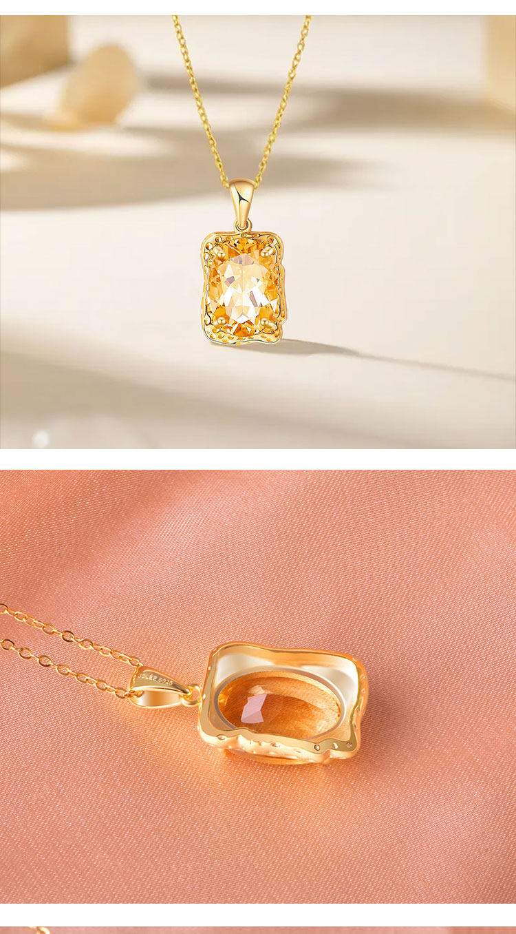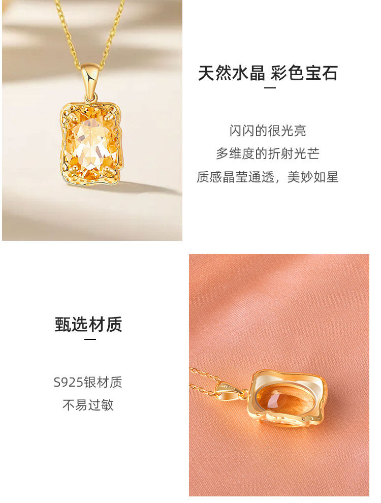 【黄水晶项链/耳钉】周六(3.21)中午12点开始 S925银轻奢时尚彩宝吊坠饰品送女士节日礼物JP25060/JE25060-水晶CC