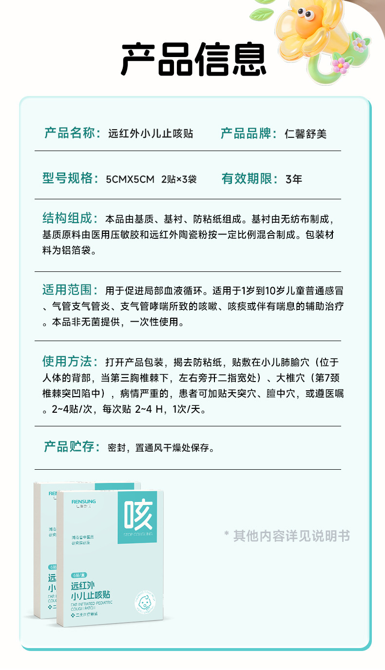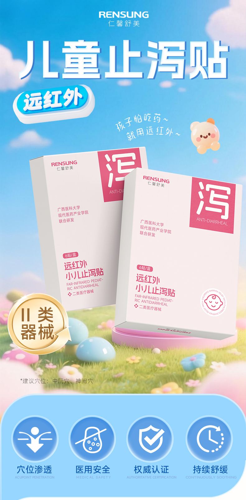 【99元任选4盒共24贴】【止咳贴|止泻贴】周日(12.28)上午10点上架 仁馨舒美儿童贴2款任选----远红外止泻贴/远红外止咳贴FF