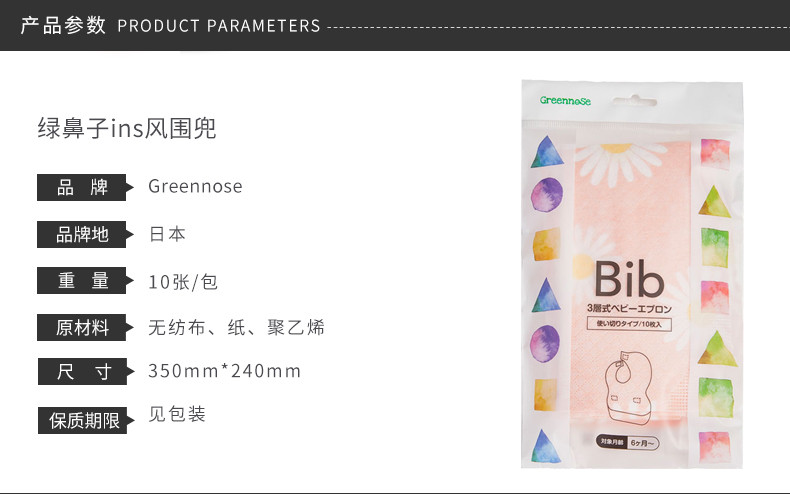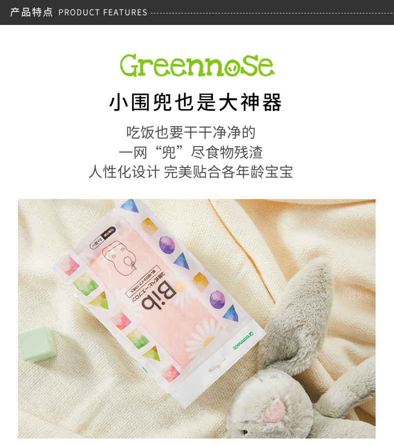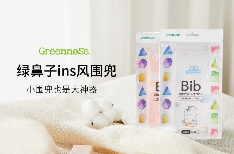 GREENNOSE/绿鼻子 一次性宝宝吃饭围兜防水立体口水兜婴儿围嘴JPY带授权招加盟代理