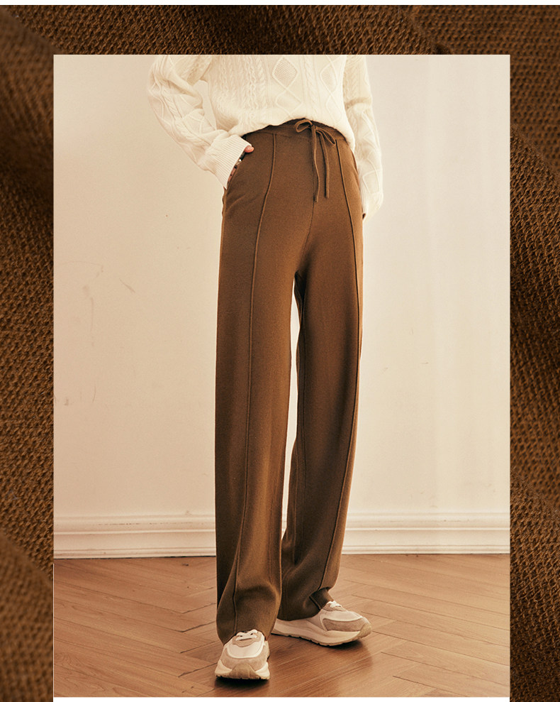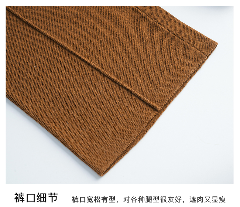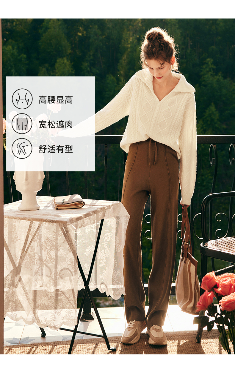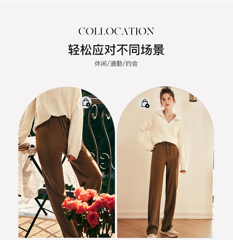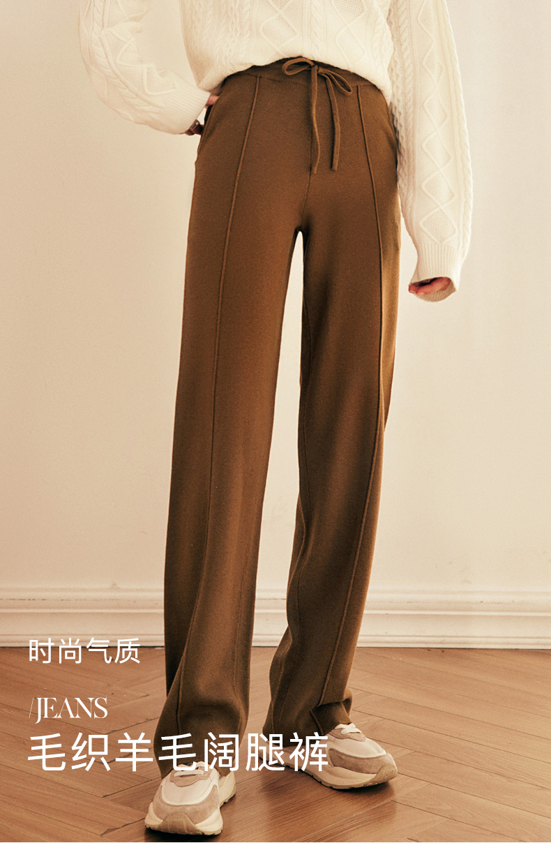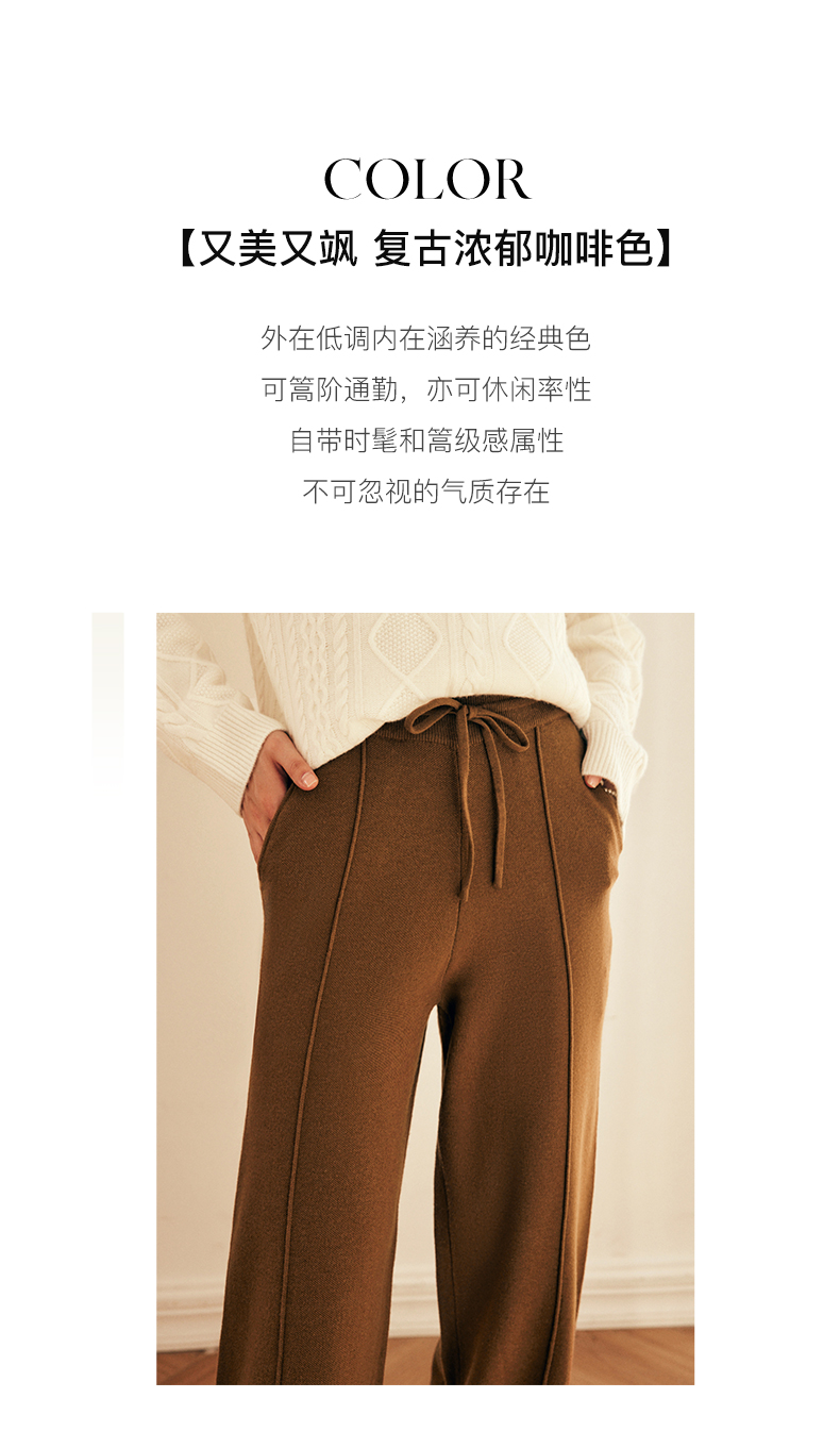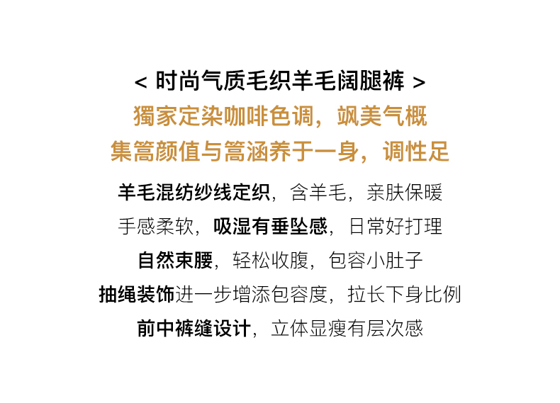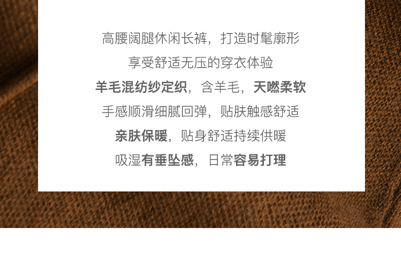 OLrain欧芮儿法式咖色休闲裤女秋冬2022新款高腰阔腿垂感羊毛卫裤