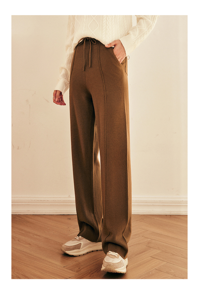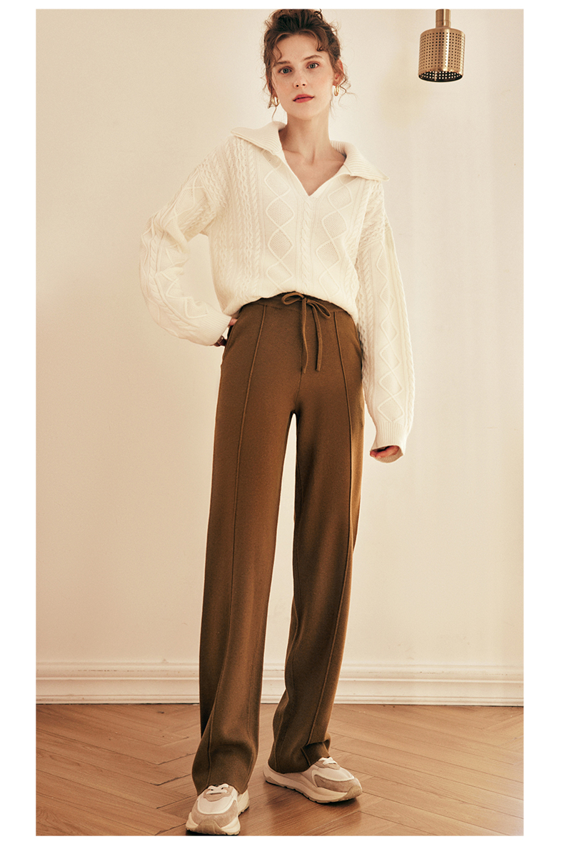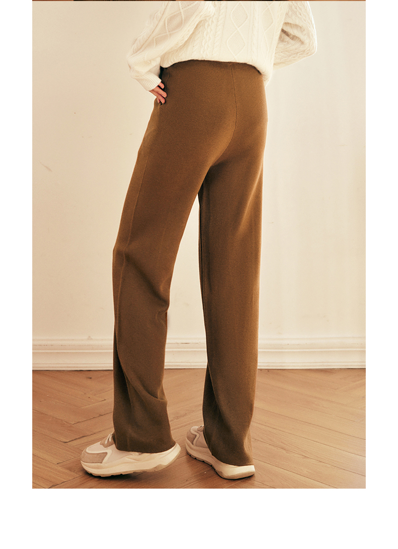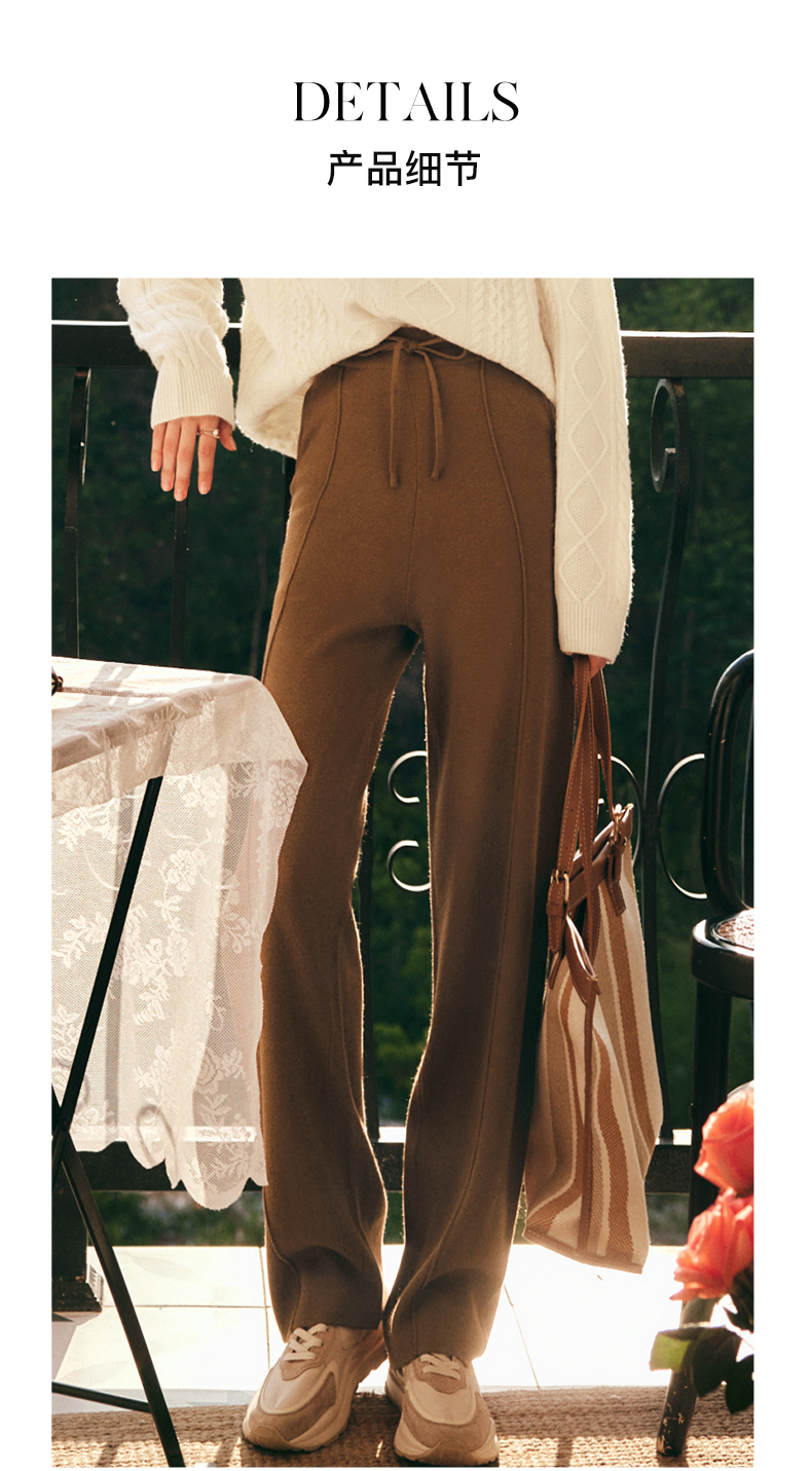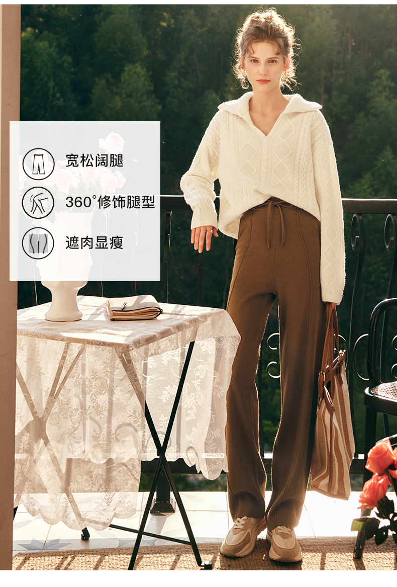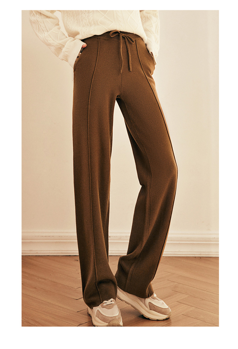 OLrain欧芮儿法式咖色休闲裤女秋冬2022新款高腰阔腿垂感羊毛卫裤