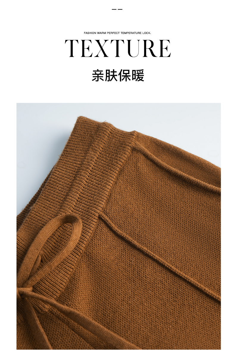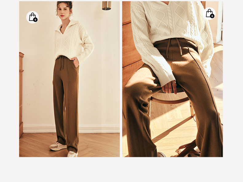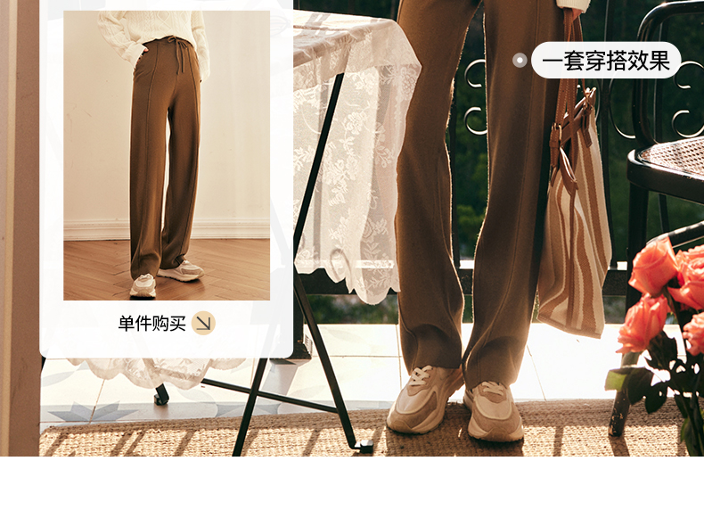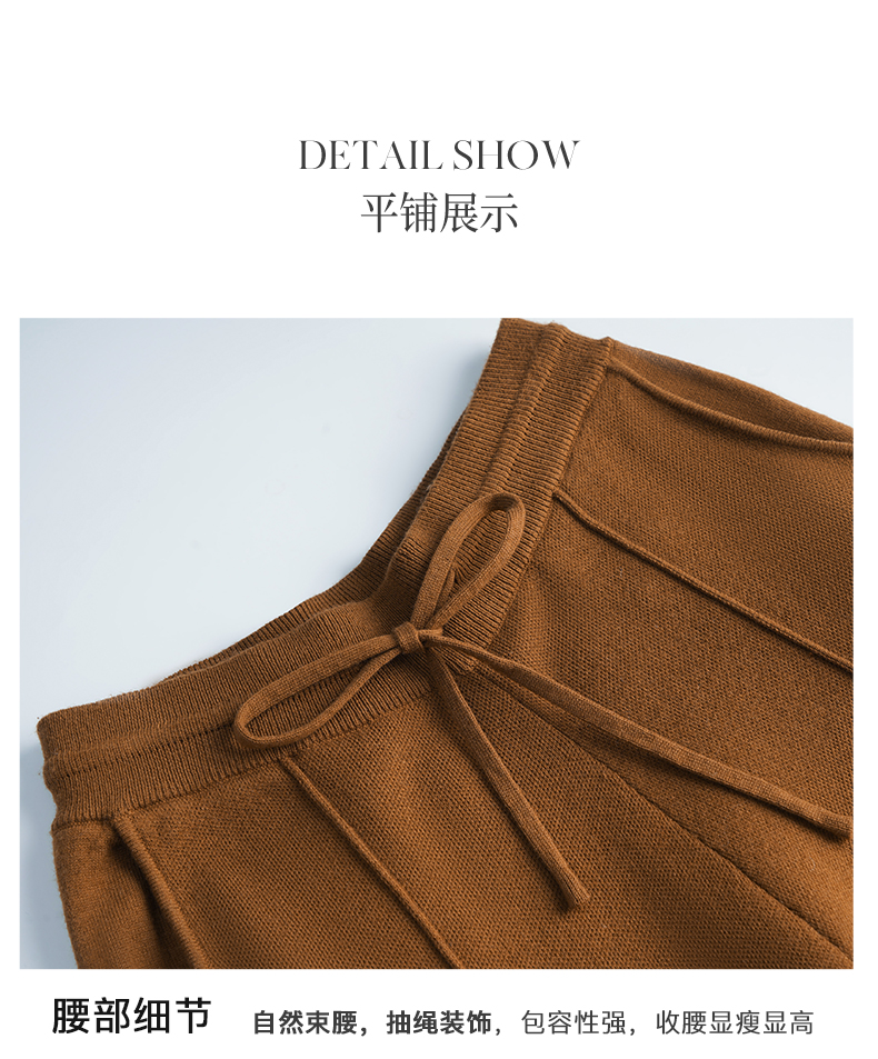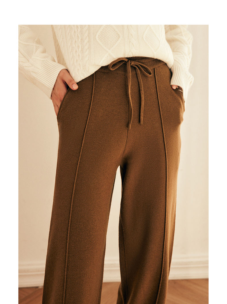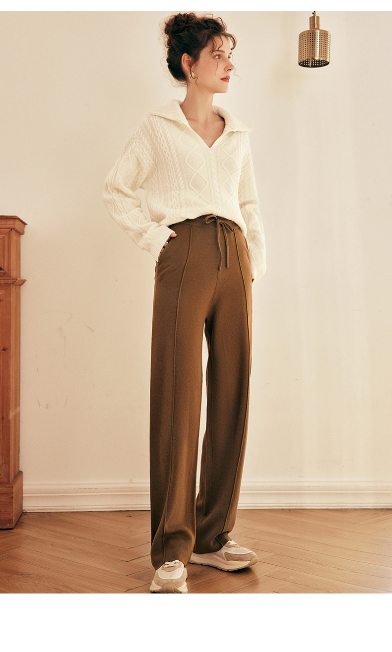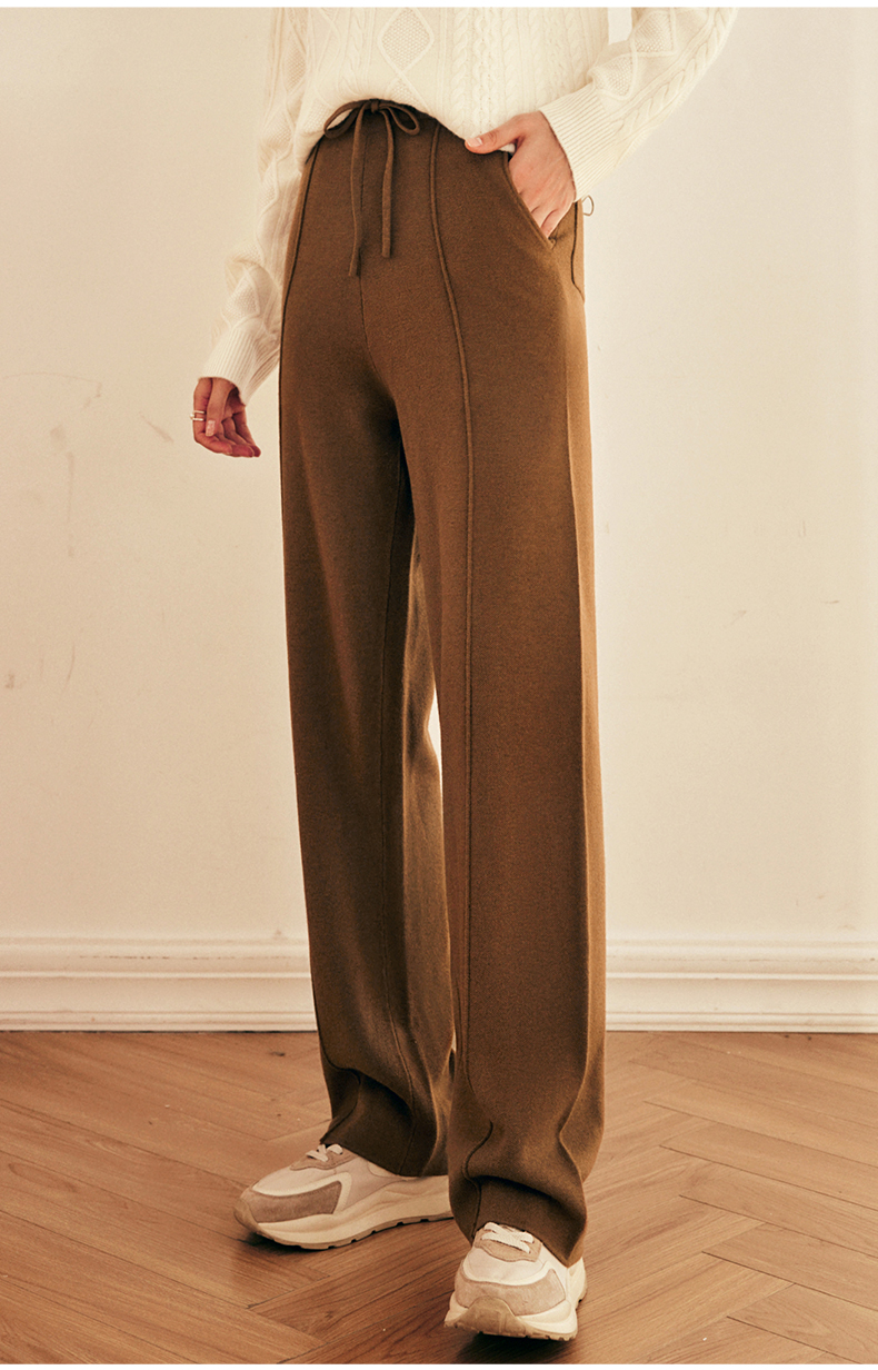 OLrain欧芮儿法式咖色休闲裤女秋冬2022新款高腰阔腿垂感羊毛卫裤