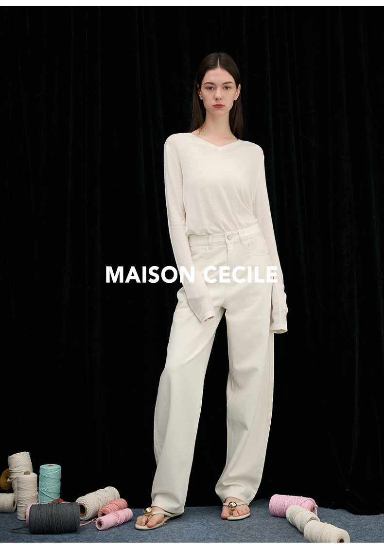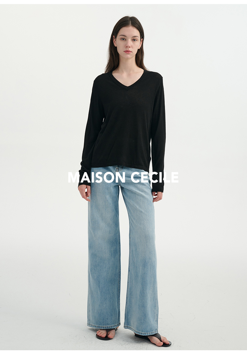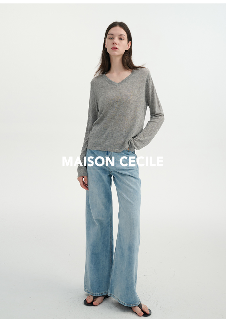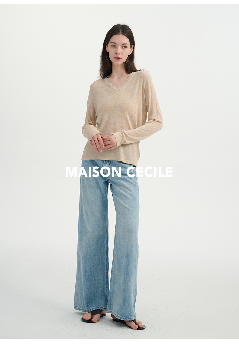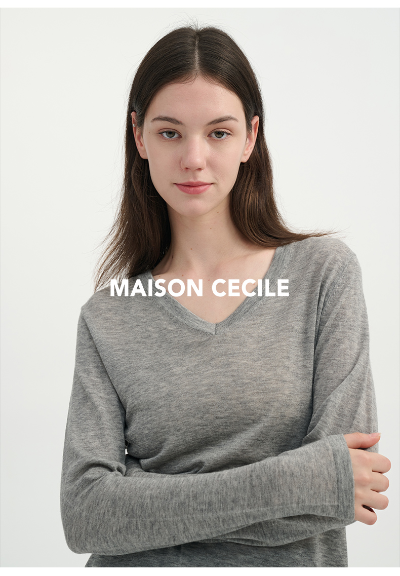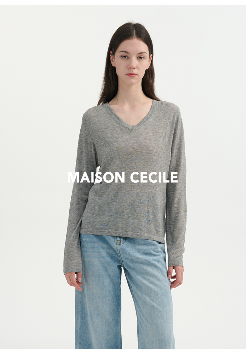MAISON CECILE四色/水溶羊毛超亲肤软糯V领打底针织上衣