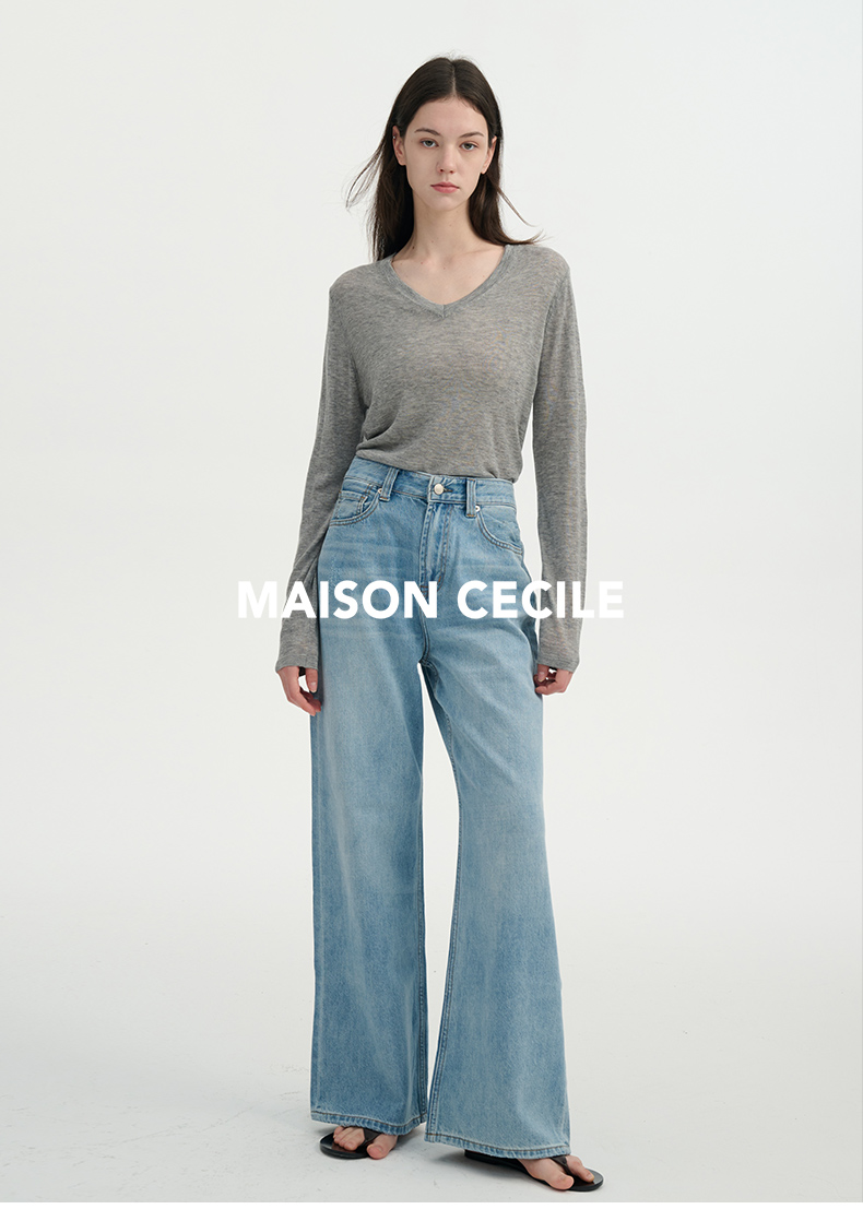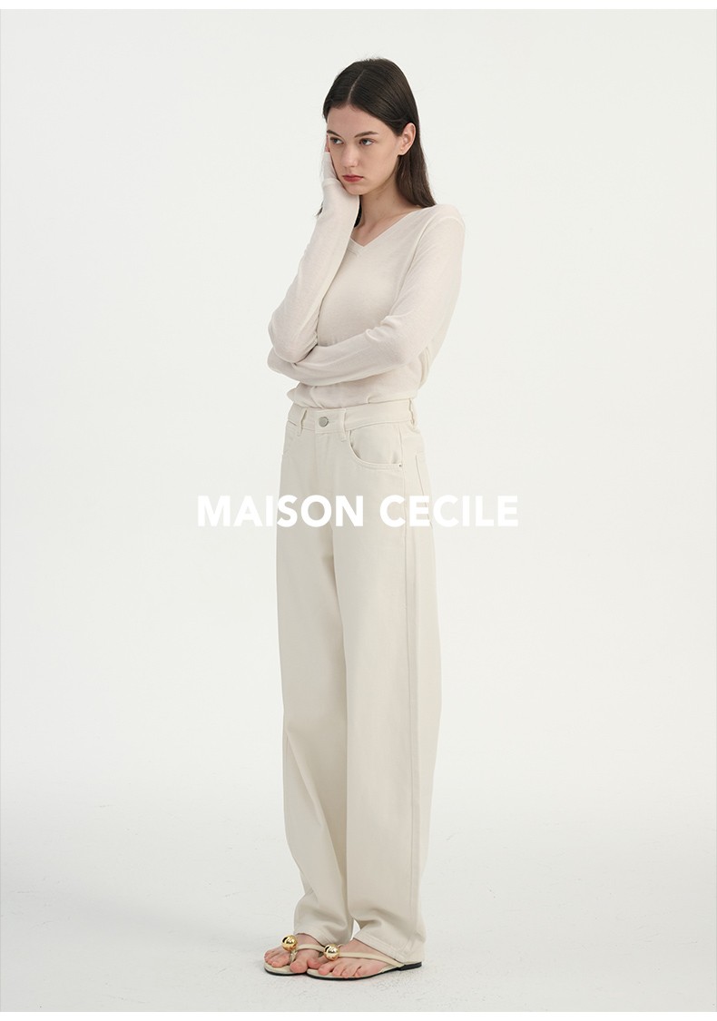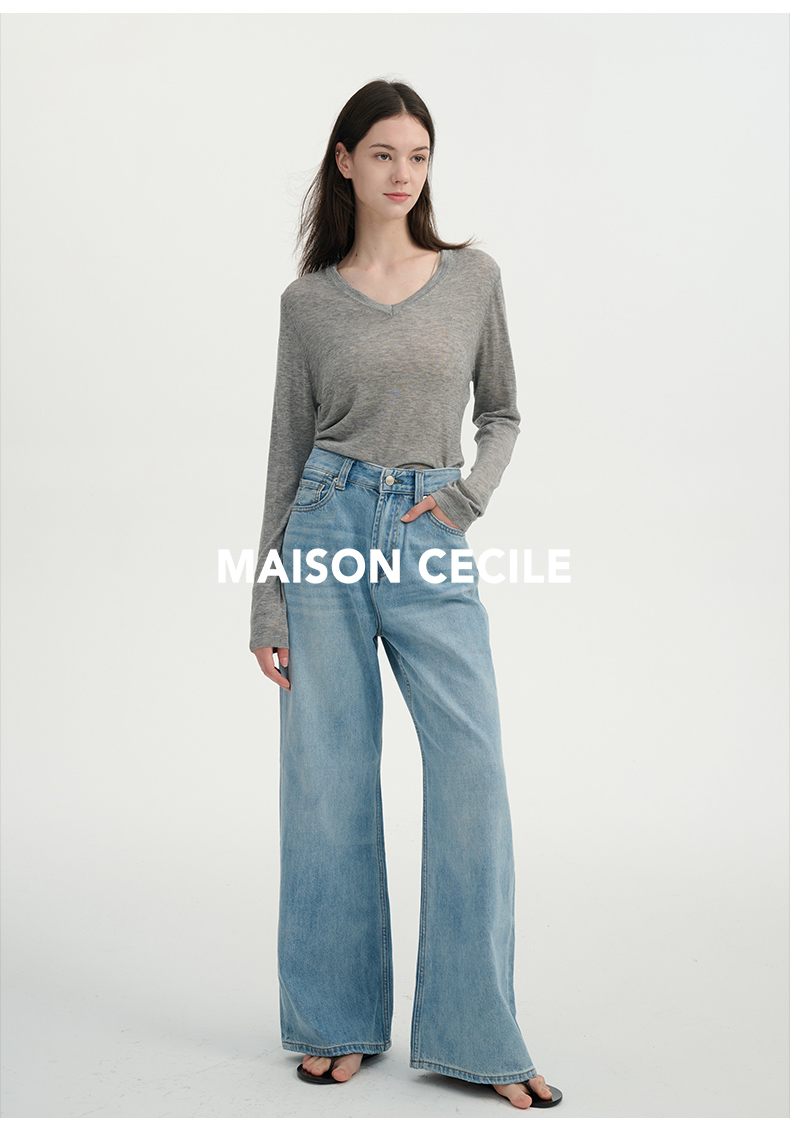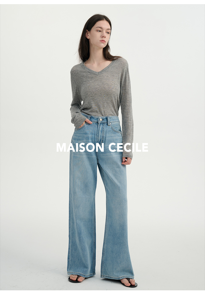 MAISON CECILE雅痞街头风格阔腿牛仔高腰直筒裤