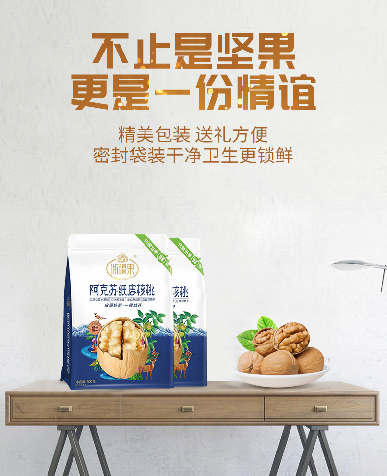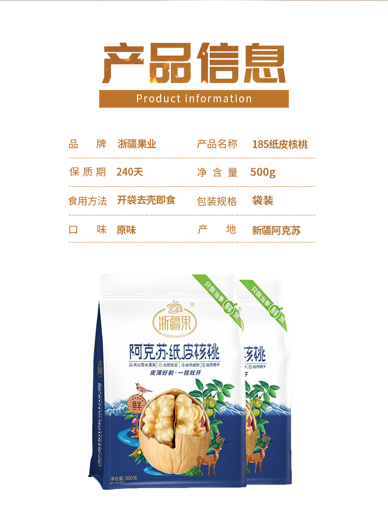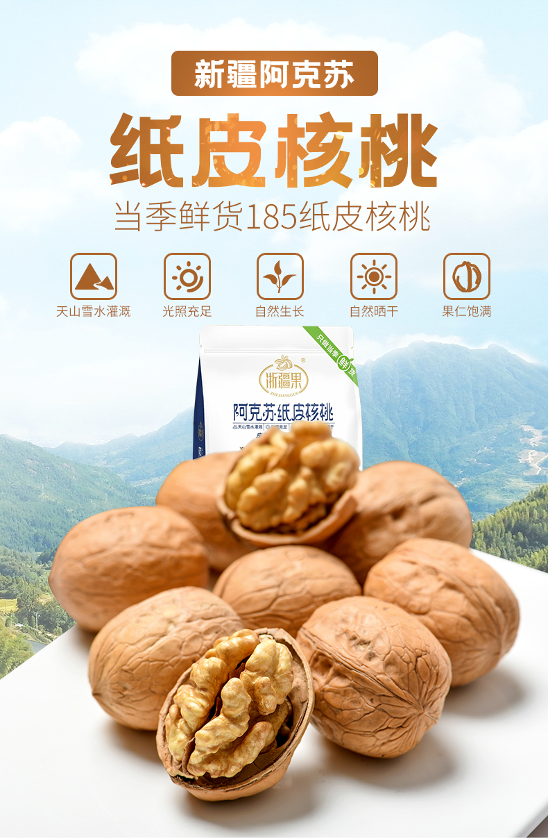 【严选】浙疆果阿克苏185纸皮核桃一级(生)袋装500克(厂家直发)