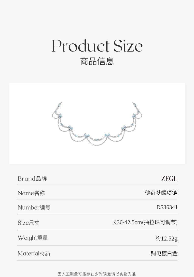 ZEGL设计师薄荷梦蝶系列双层蝴蝶项链女生2023年新款潮小众锁骨链