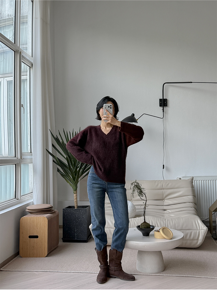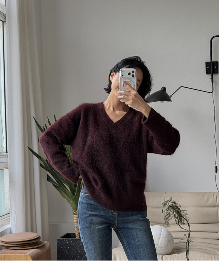 奢感牦牛绒 松弛感 V领针织毛衣