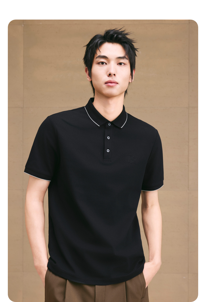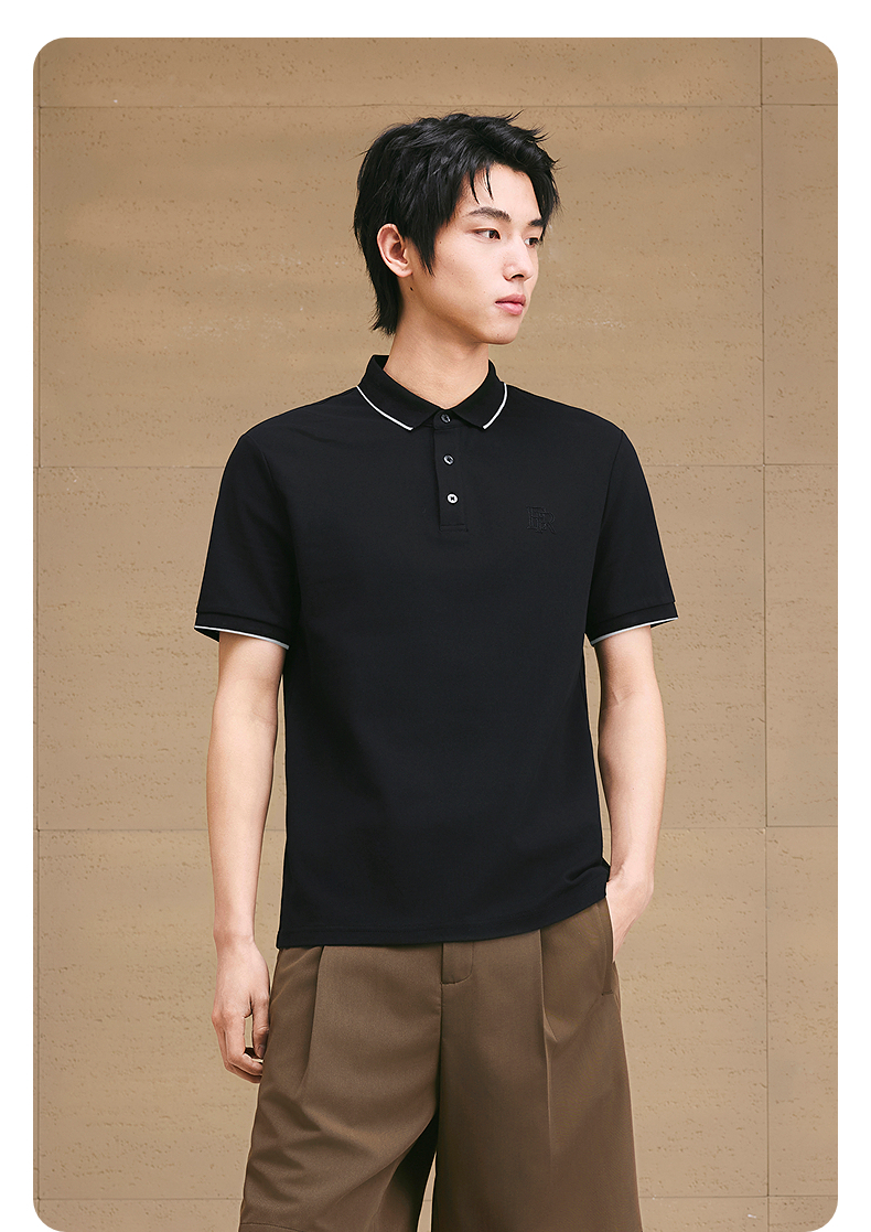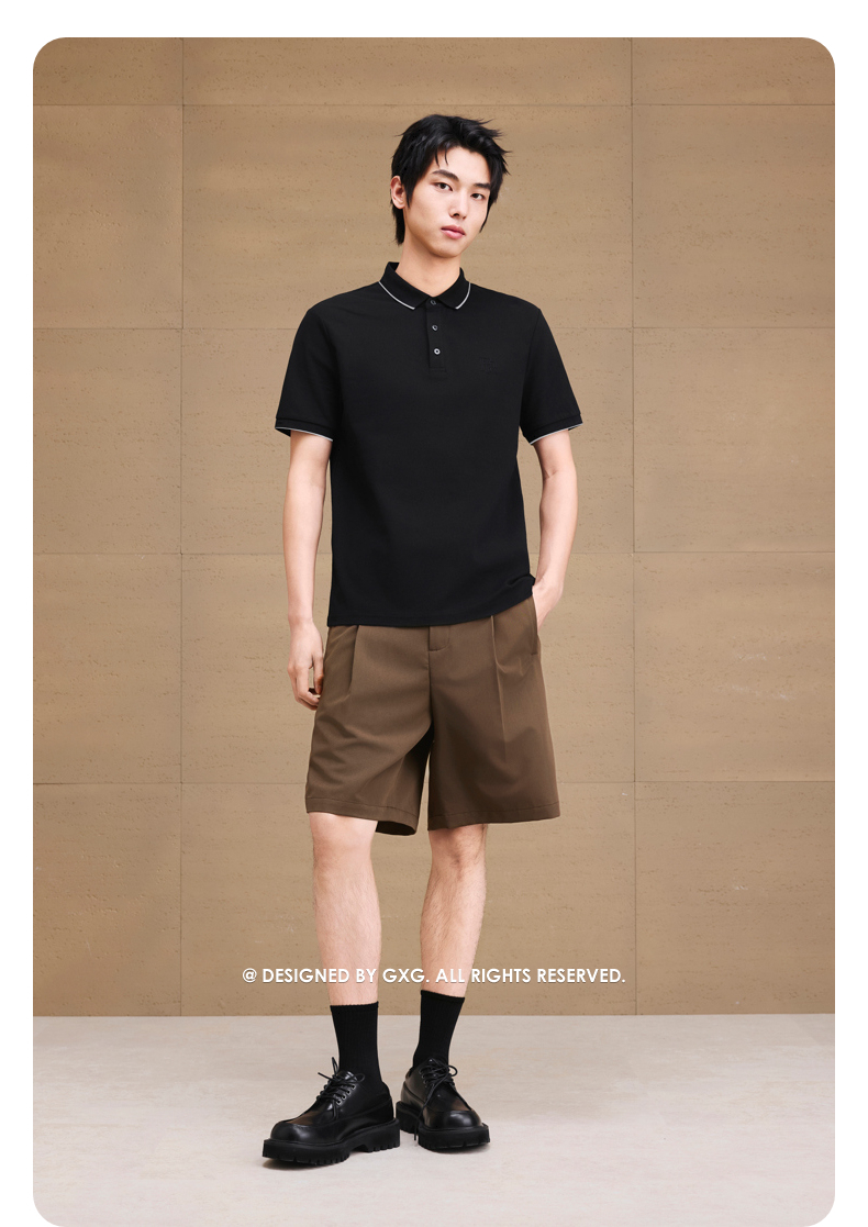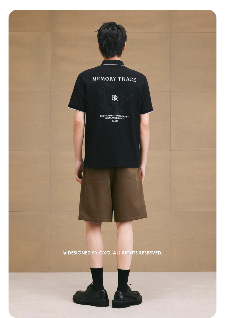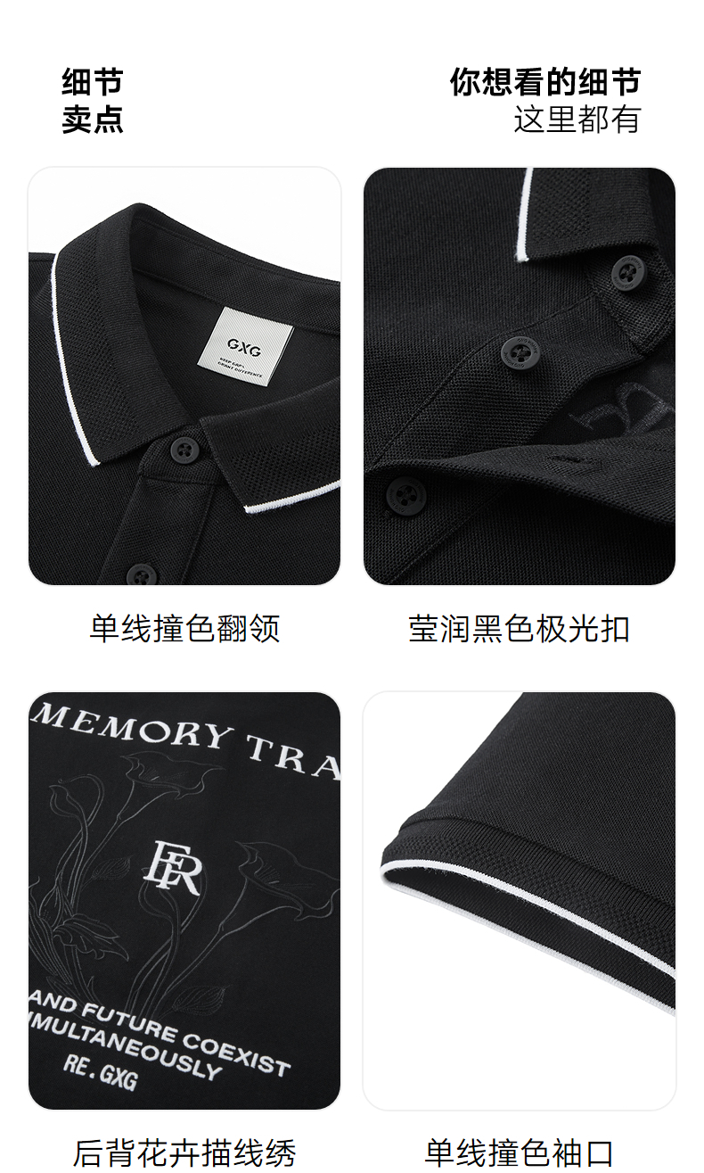【凉感】GXG男装 后背花卉刺绣polo衫短袖商务休闲上衣 25夏新品