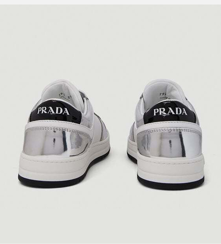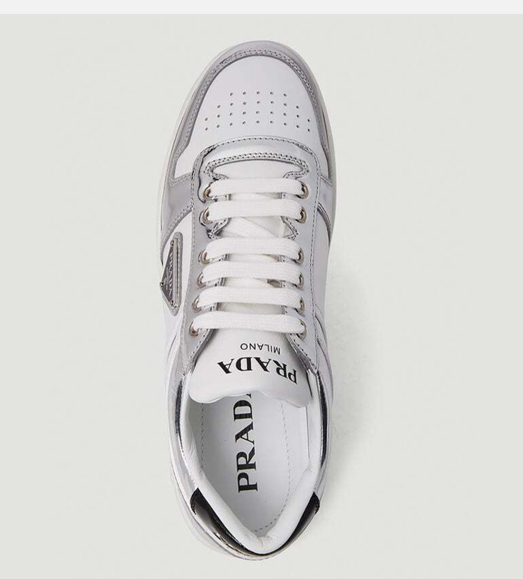 PRADA 普拉达 女士 Downtown 穿孔皮革珐琅金属三角徽标休闲运动鞋 混色 1E792M 3LL2 F0J36