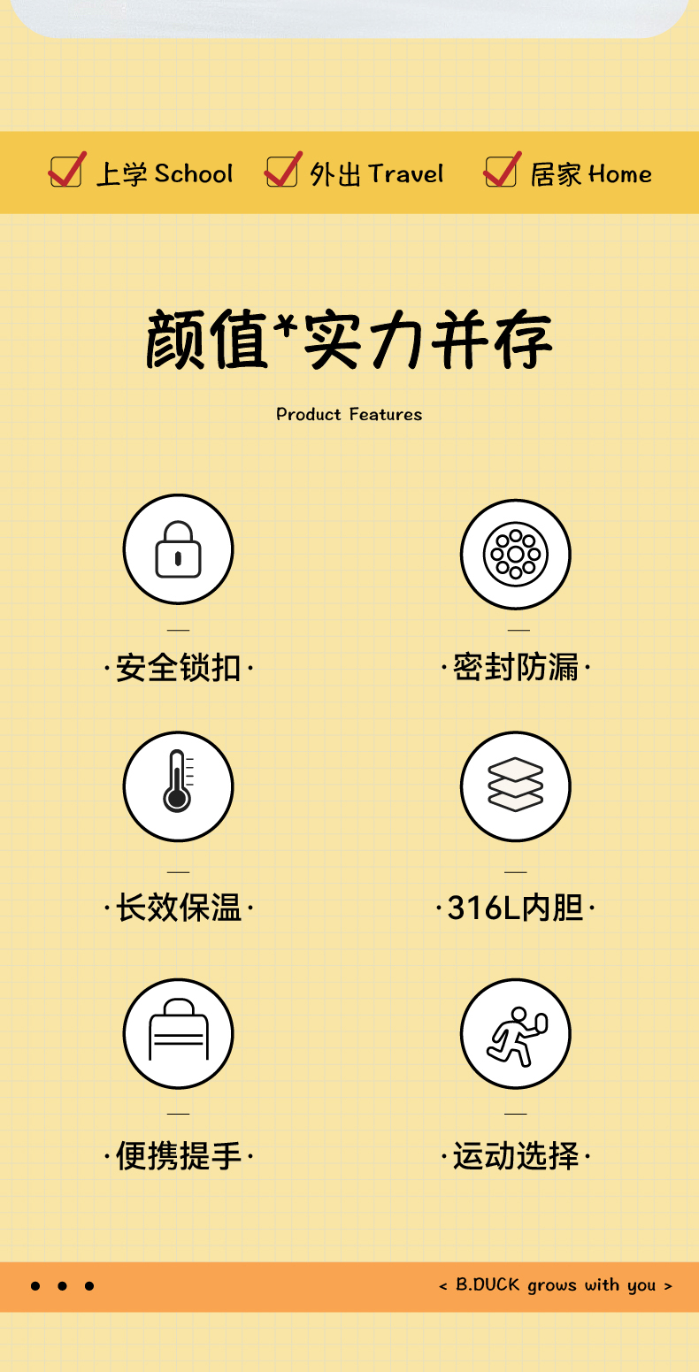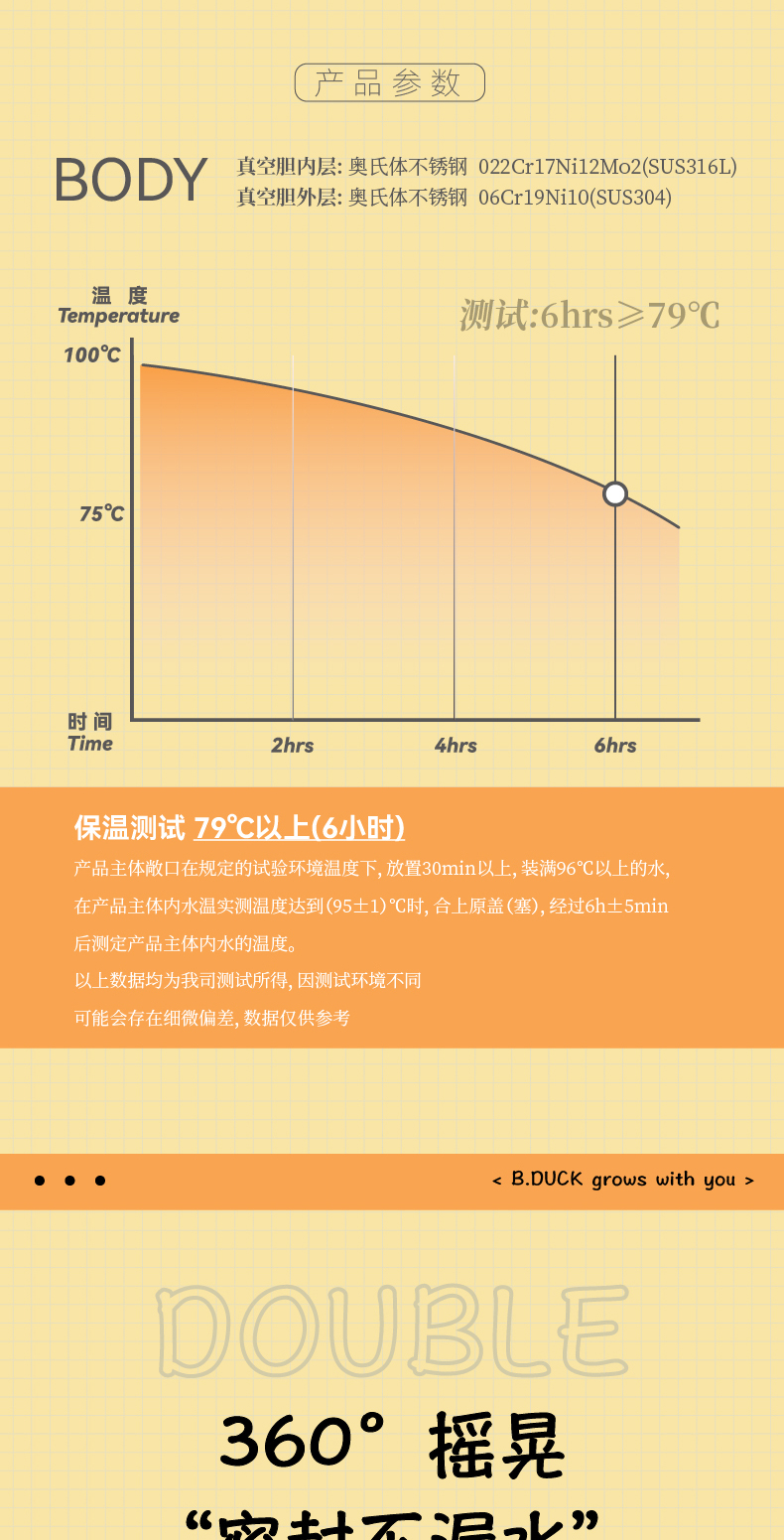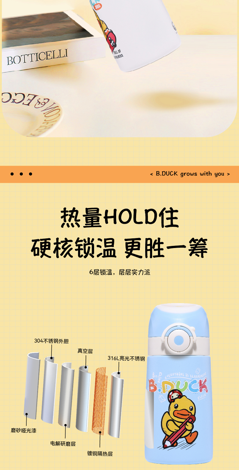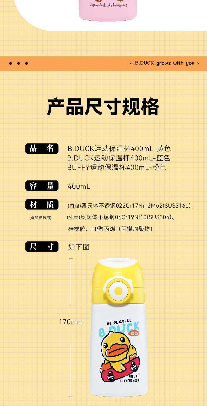 【专柜同款精品】B.Duck运动316不锈钢保温杯400ml BP6506609