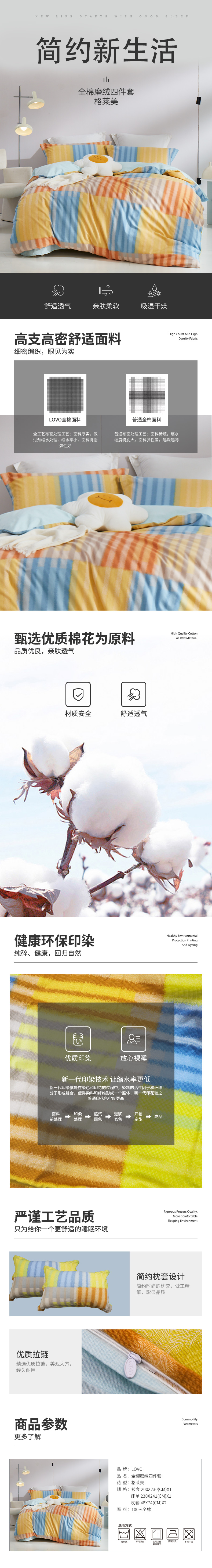 罗莱lovo全棉磨绒四件套格莱美