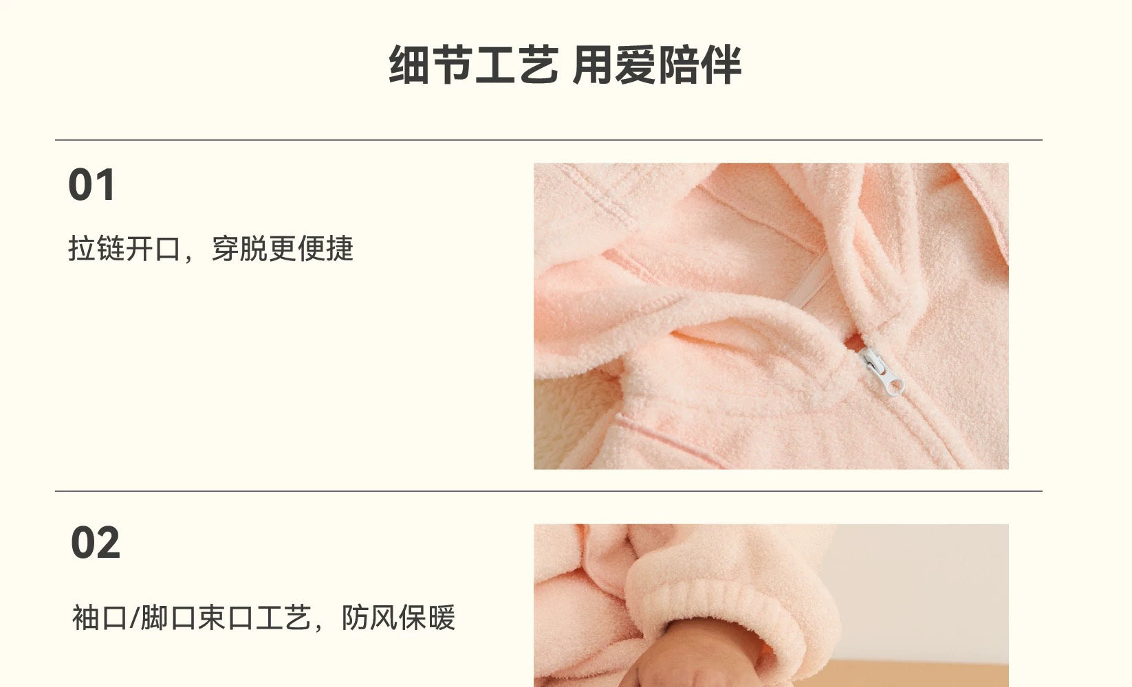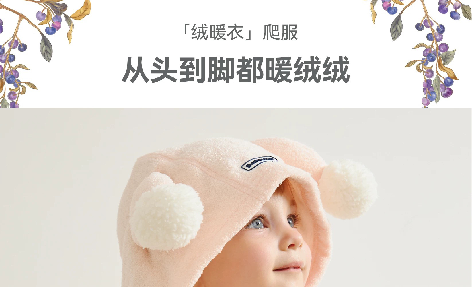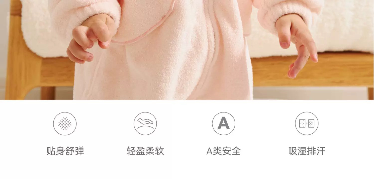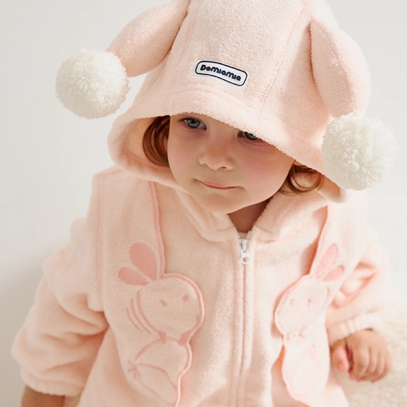 Domiamia 宝宝带帽加绒爬服 外出防风保暖