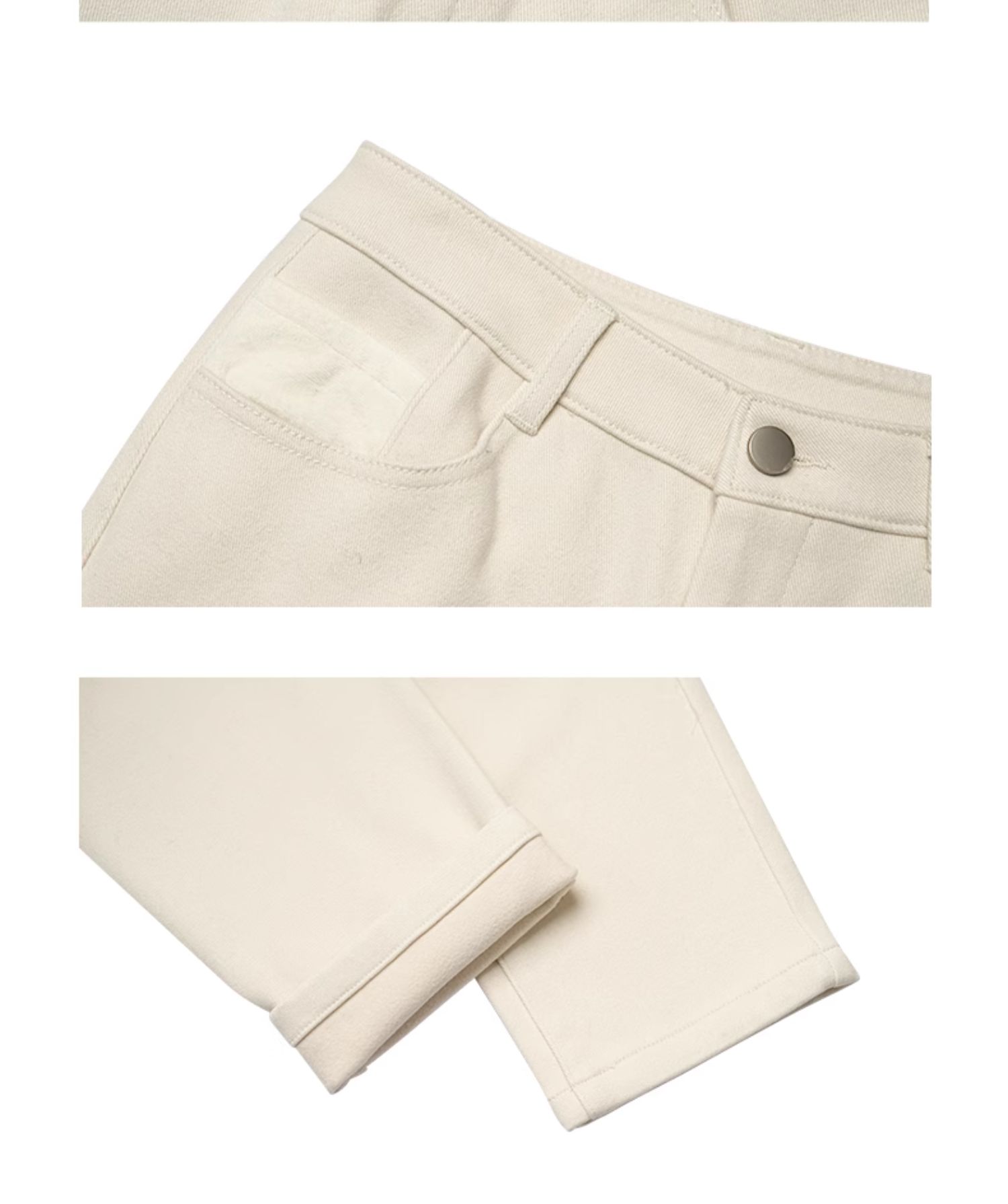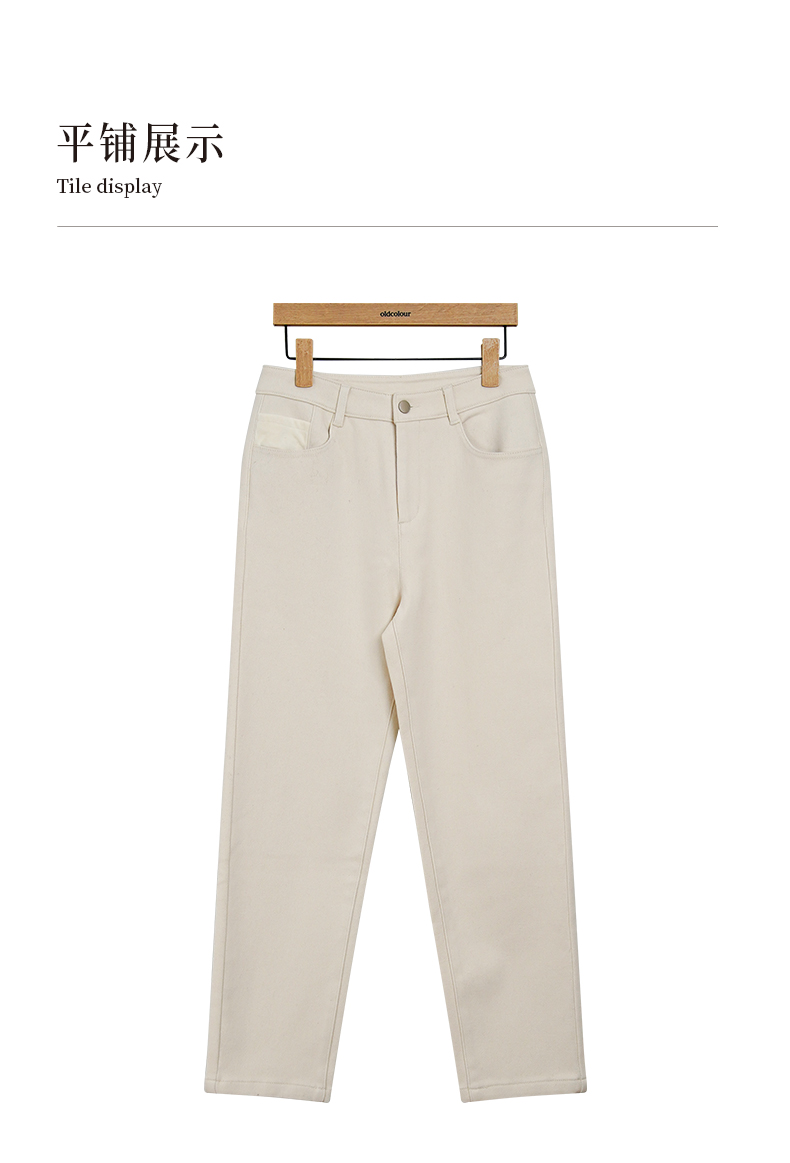 oldcolour冬新款白色简约休闲通勤百搭直筒加绒牛仔裤女P451102A1
