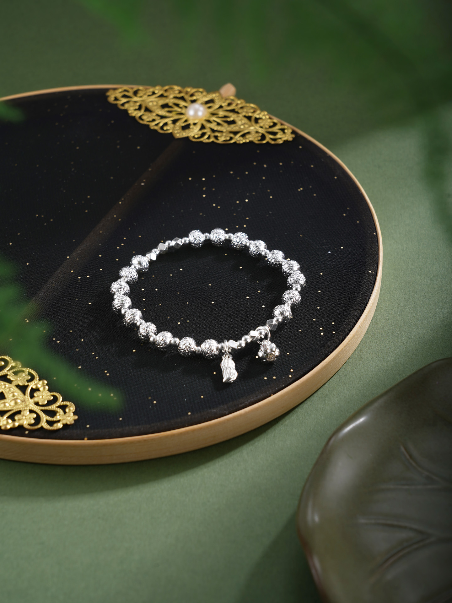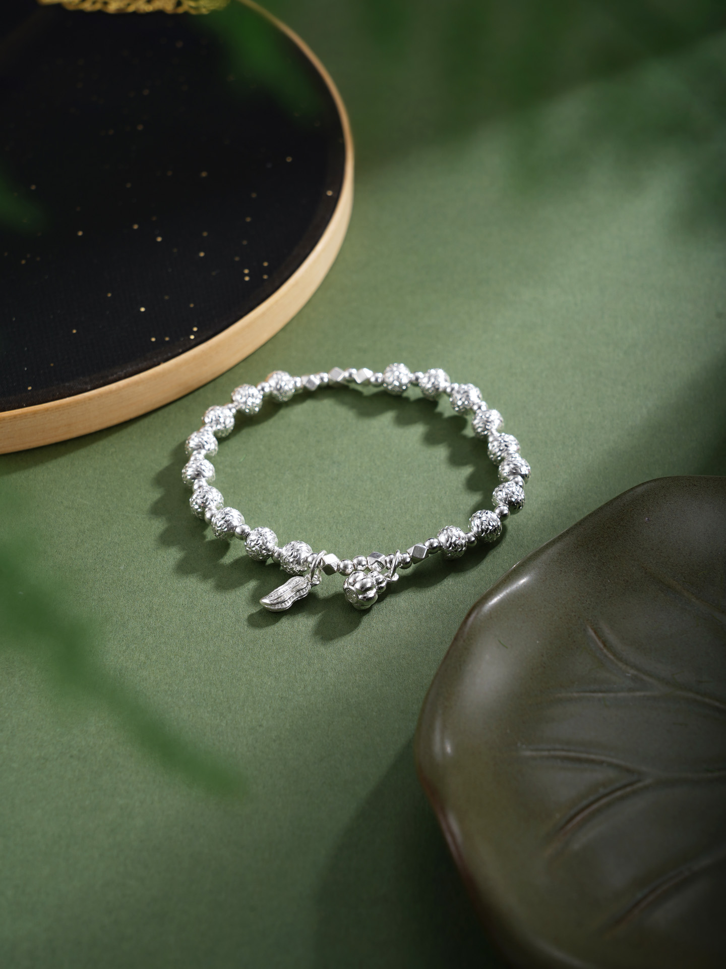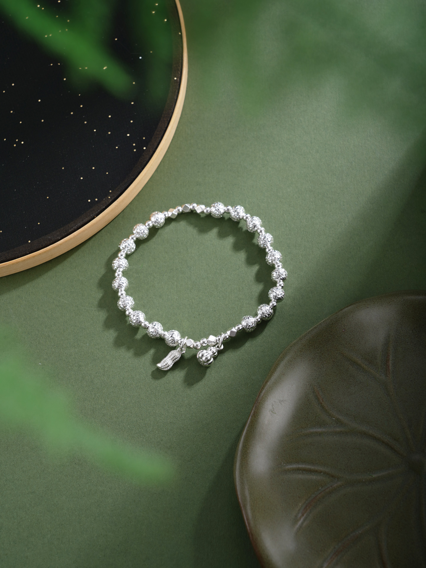 【寓意】:纯银手链点缀葫芦与花生坠饰,取“福禄花生”之吉谶。葫芦寓“福禄双全”,花生谐音“好事发生”,二者相合,寓意福泽绵长,喜事连连。