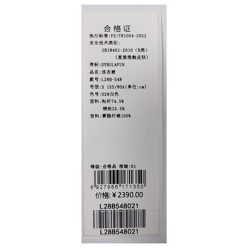 戴布拉芬连衣裙L28B548