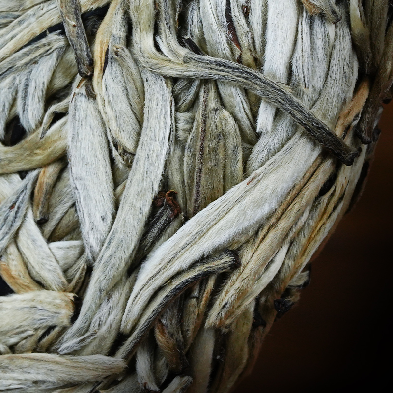 云南白茶往后看必将是继普洱之后云南茶的另一张名片,论工艺来讲云南白茶的制作工艺与福鼎白的相差无几,甚至更优于福鼎白的工艺,从茶箐原料品质来讲,那可能要甩出福鼎白好几条街还不止,福鼎大白部分树龄基本都在20-50年左右这已经非常高了,但是在看云南由于地理位置与生态的原因,树龄那可真是高太多了,树龄越高茶箐等级越高,内质会越好,对于后期陈化所需要的微量元素酶物质更丰富,陈化出来的品质等级也会相应的越好,所以说要喝有年份的白茶,那必定是云南白茶。甄选冰岛古树密毫白芽,茶毫具有保护和分泌功能,其基部有能产生芳香物质的腺细胞。同时它体内的游离氨基酸和粗纤维等组分含量显著高于茶身,古树加持,成就高阶毫香,持久耐泡!