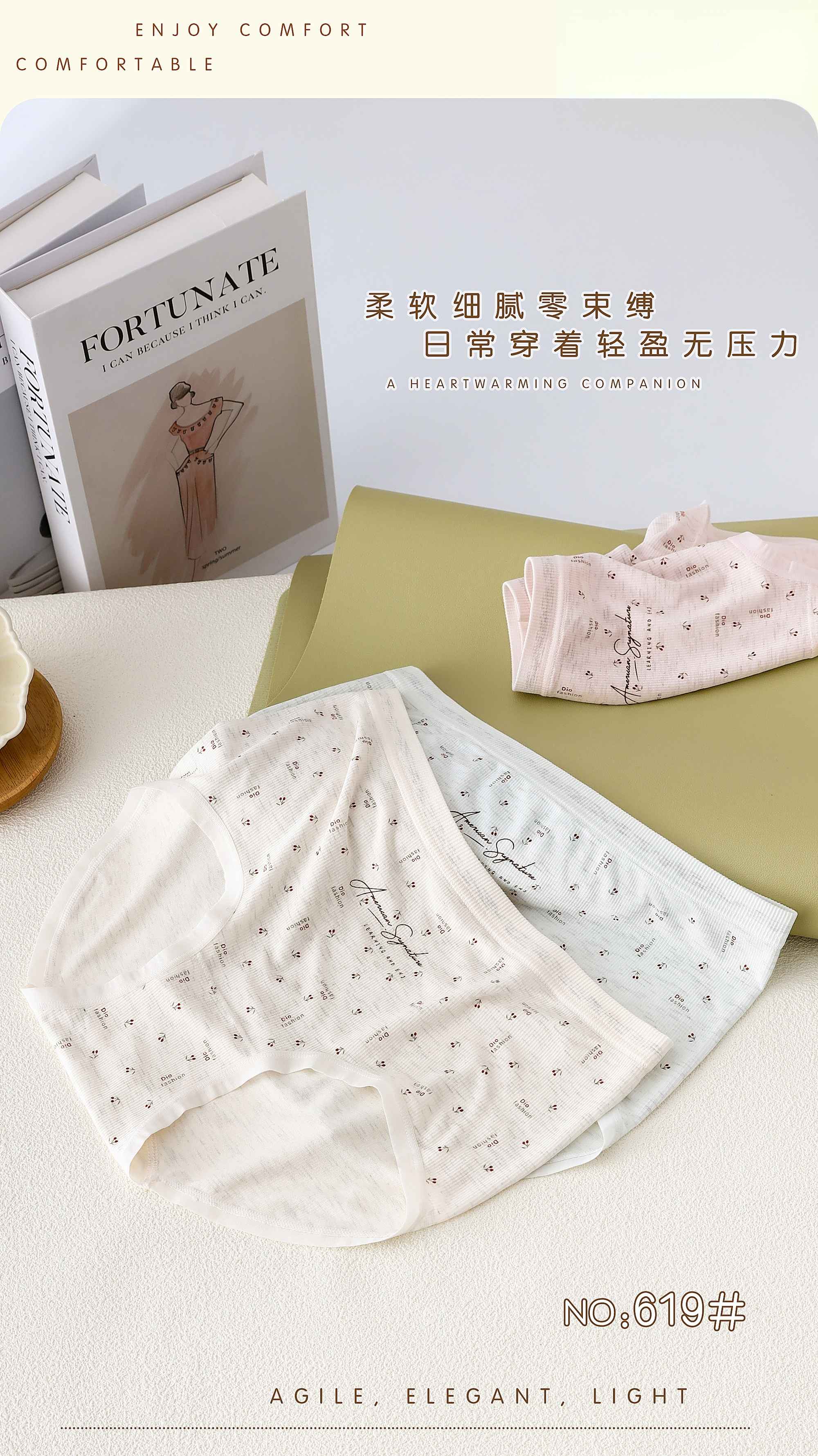 新款女士无缝内裤时尚印花裸氨棉舒适透气三角裤裸感亲肤女裤头0619