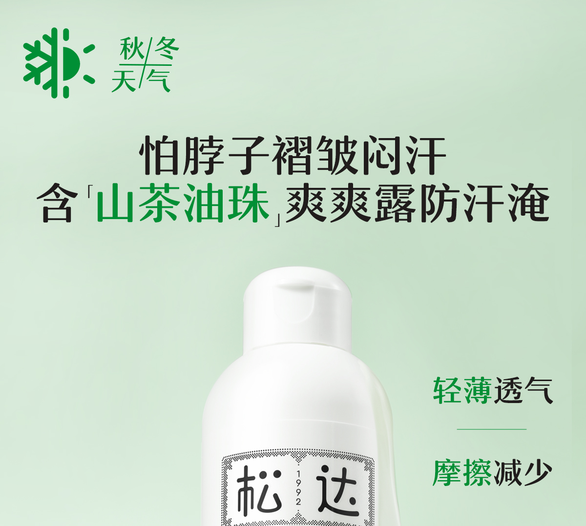 松达婴儿山茶油冰爽露爽身露宝宝桃子水新生儿脖子腋下防淹爽身露200ml