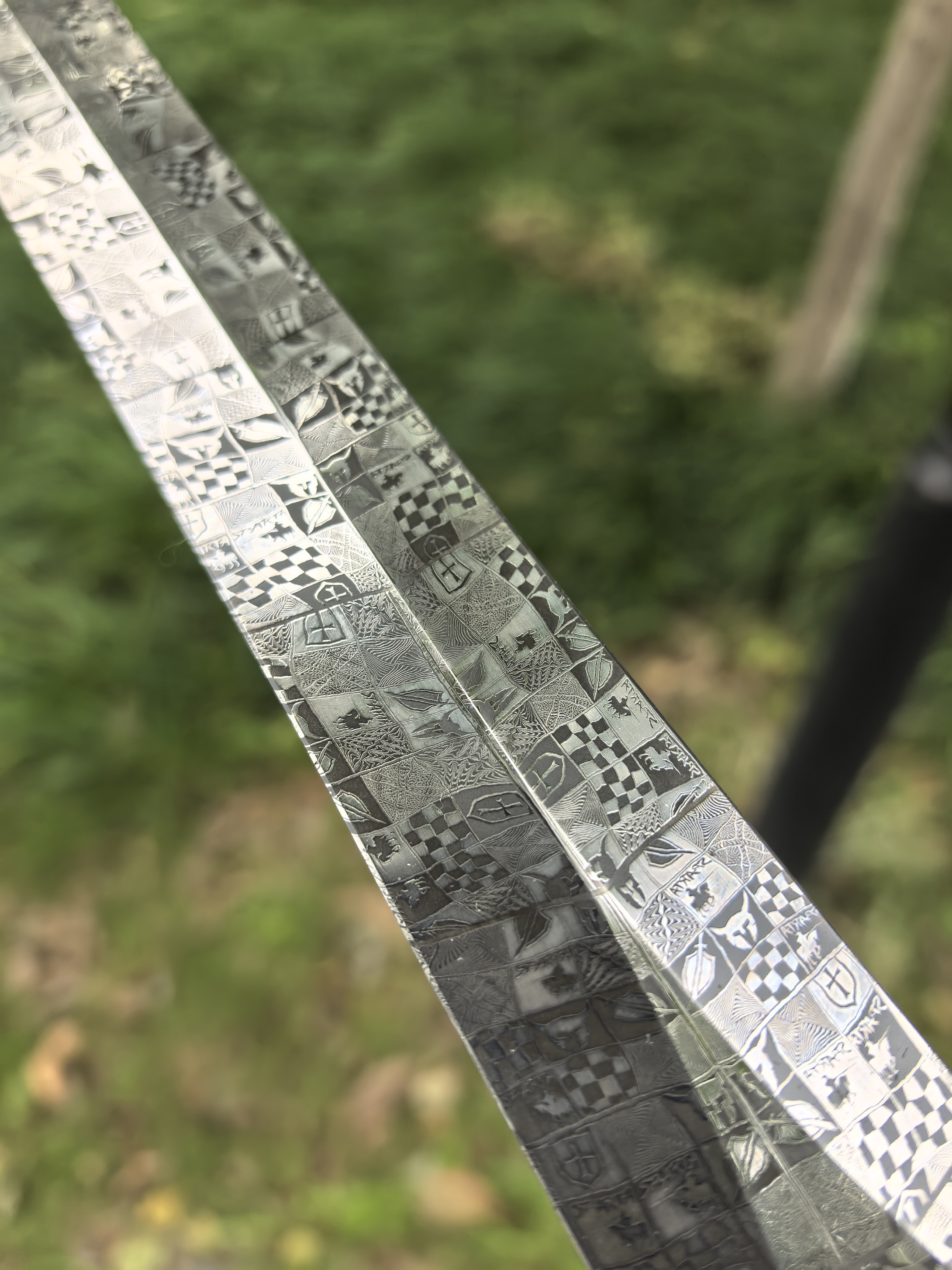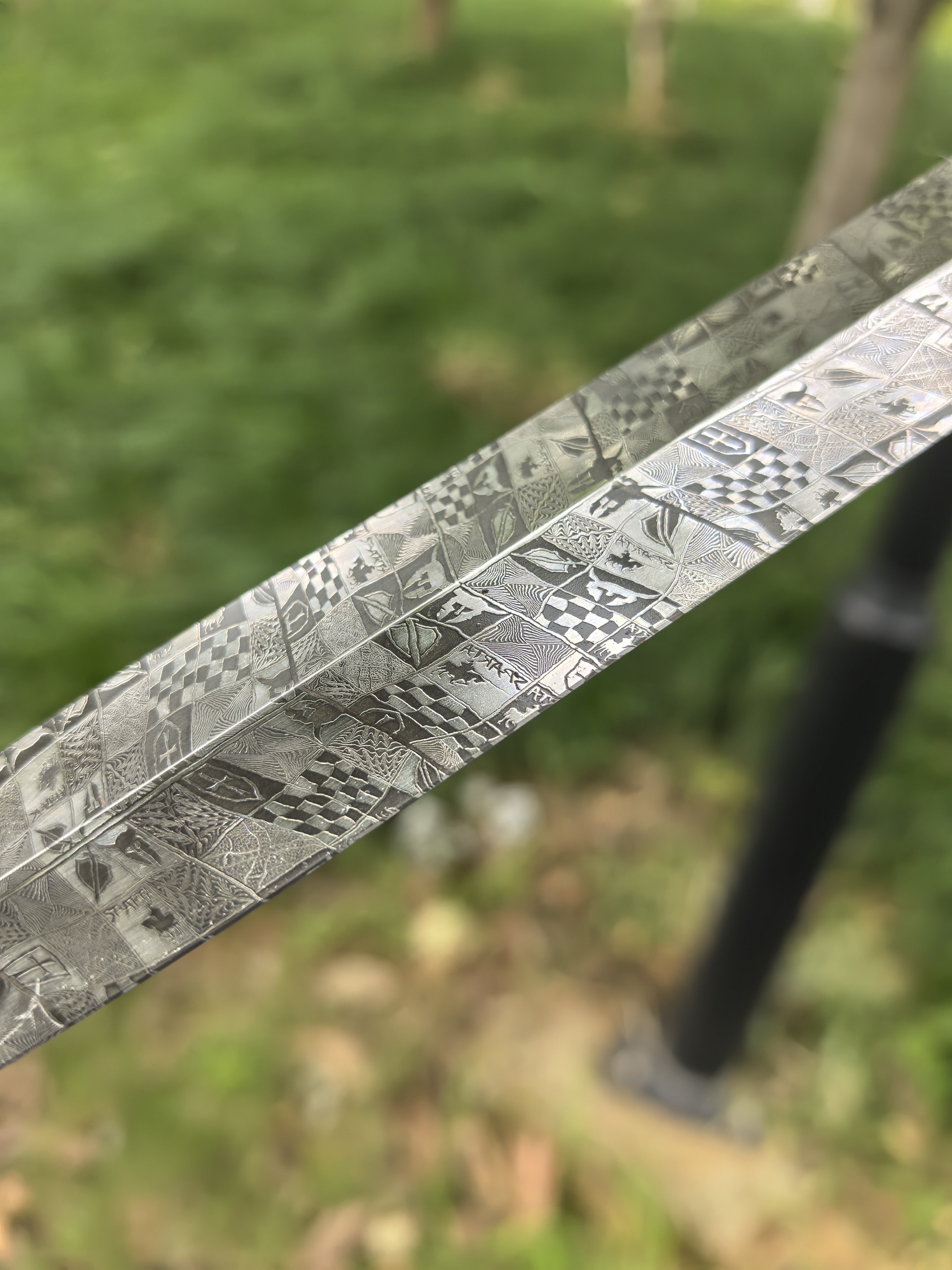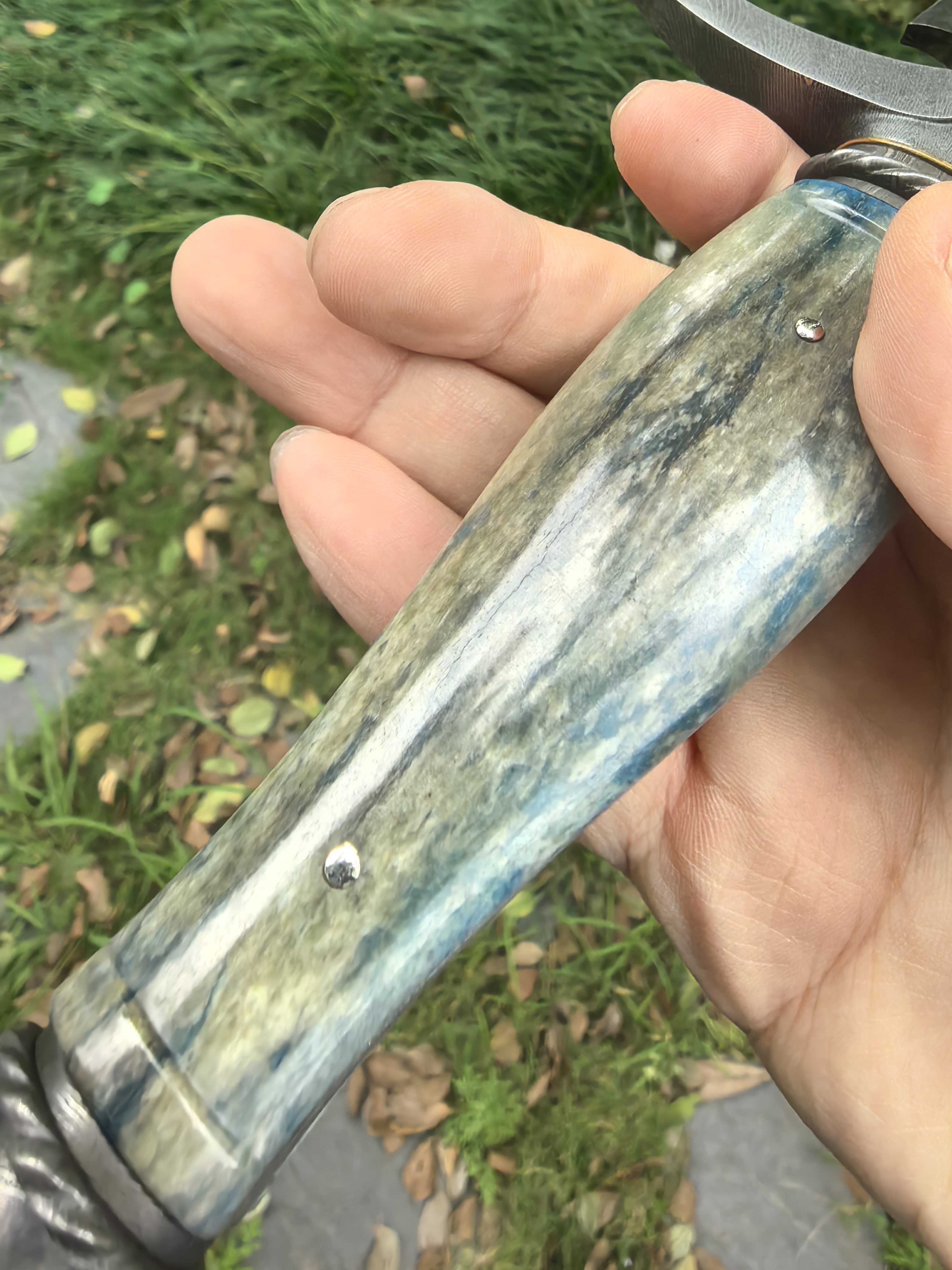 专门为活动做的大马短剑,这只尺寸加大了,非常值得,复杂锻打斯巴达勇士大马士革钢,用了一块上好的玉化猛犸,润度看的到