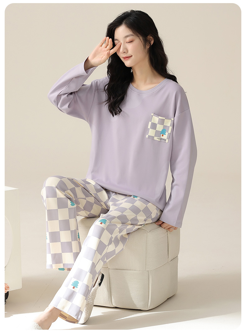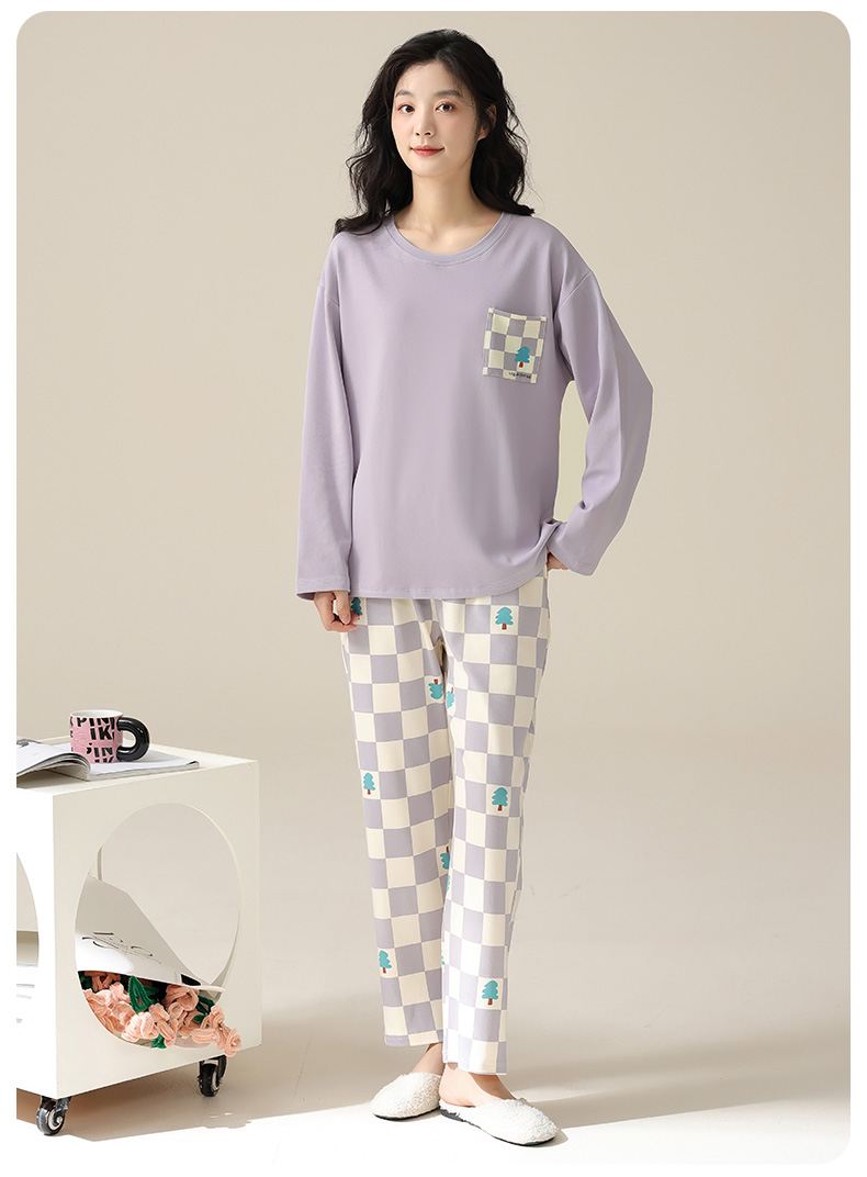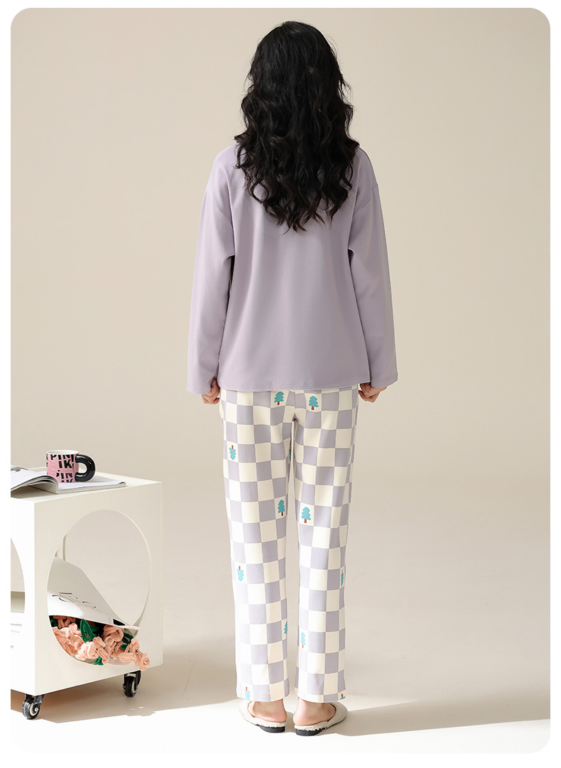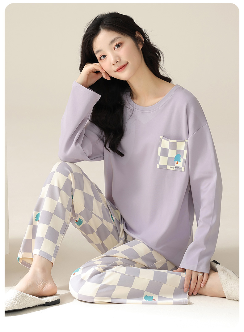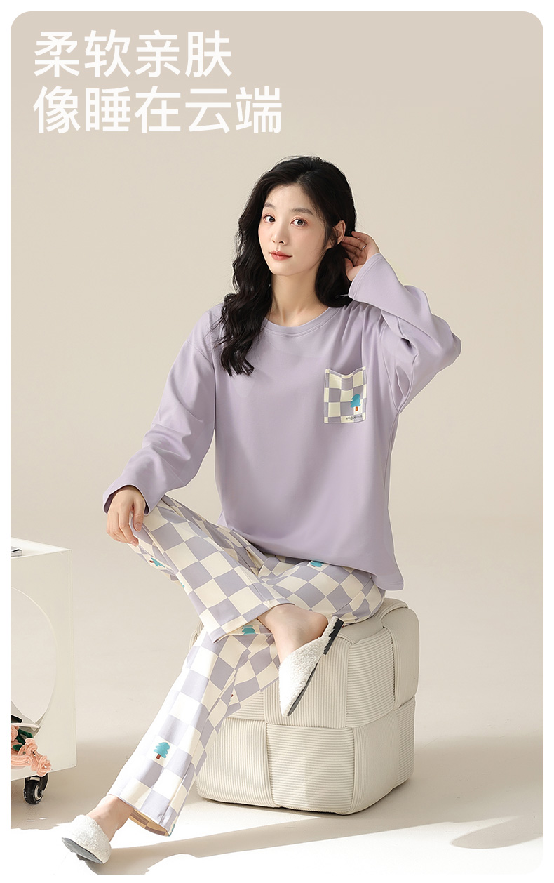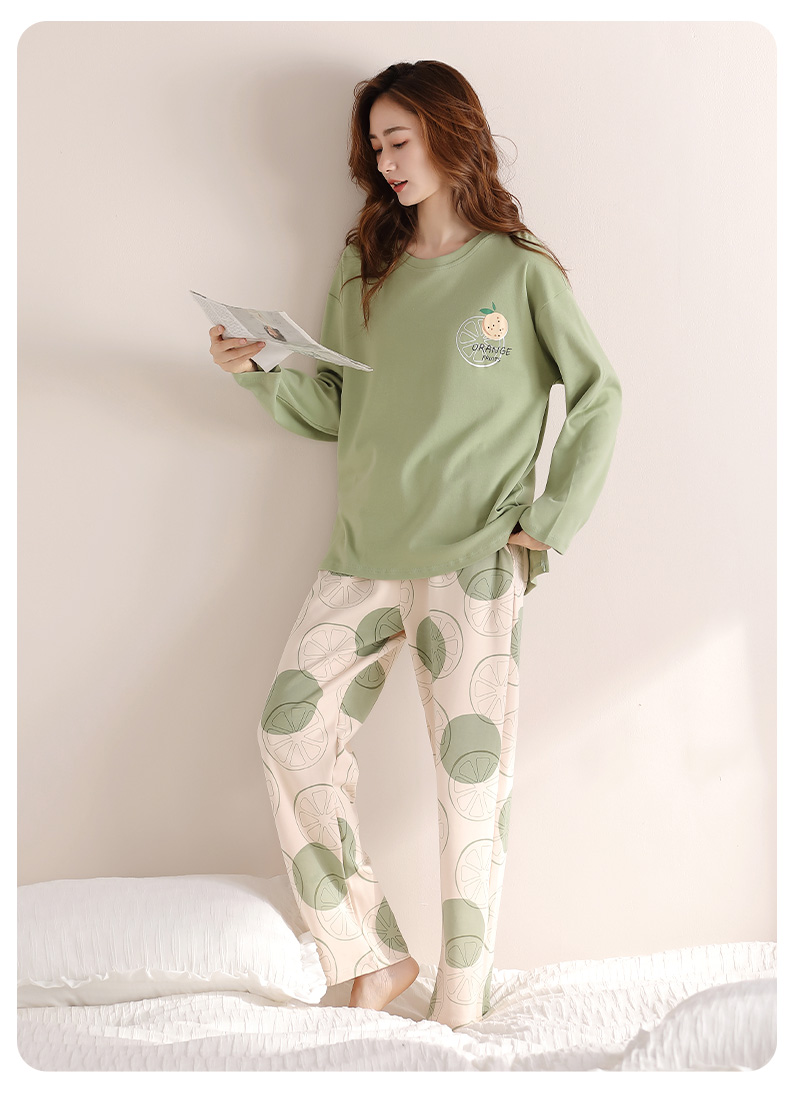 爱帝秋季女士纯棉睡衣印花休闲圆领长袖长裤家居服套
