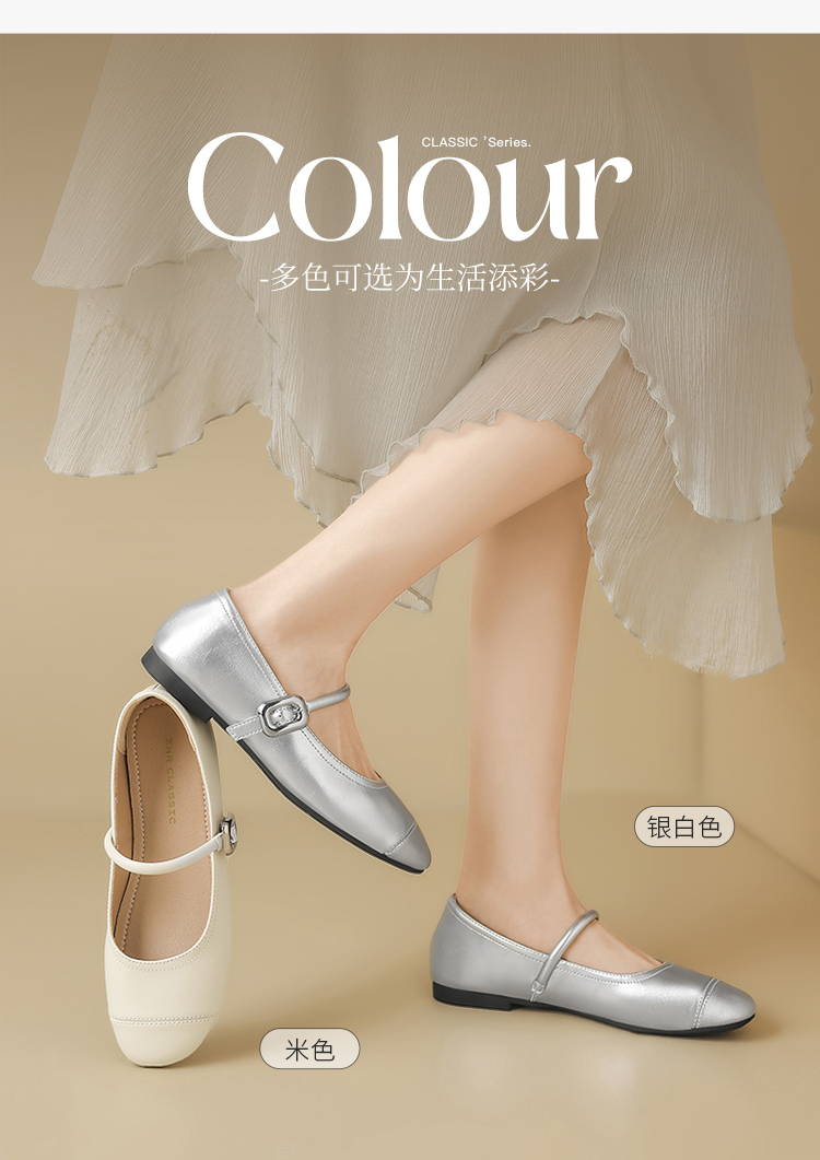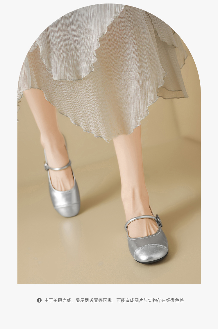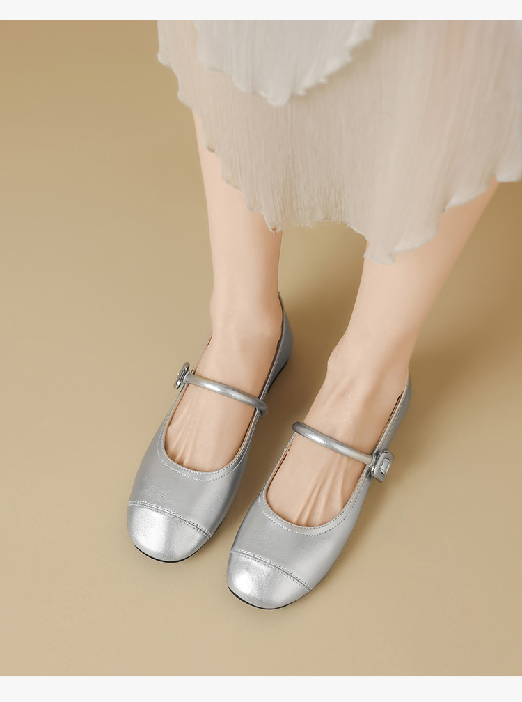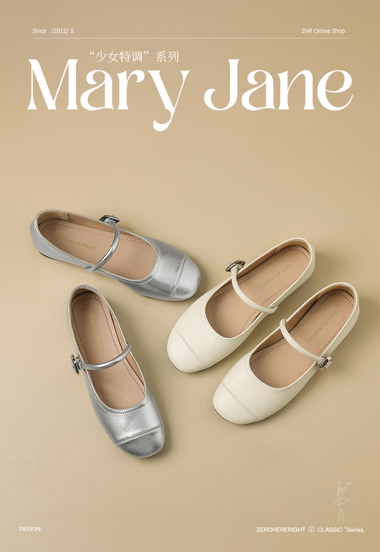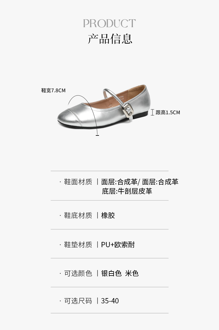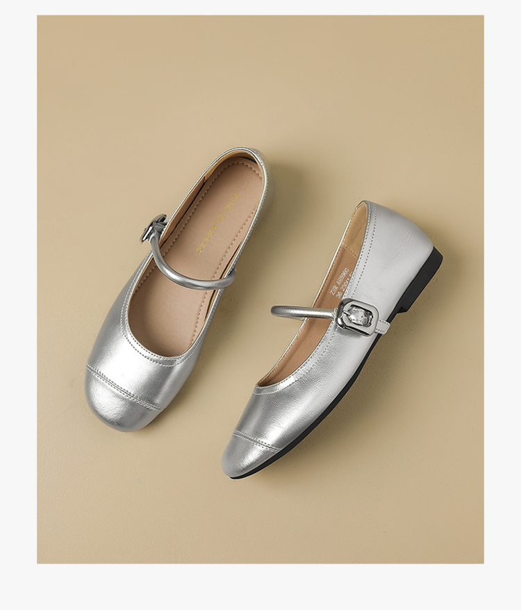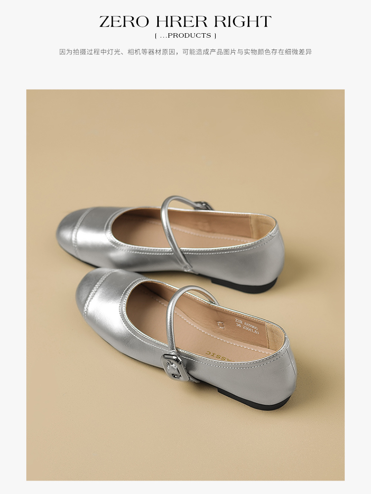 ZHR银色玛丽珍鞋女2025新款夏季法式圆头平底小皮鞋软底单鞋女