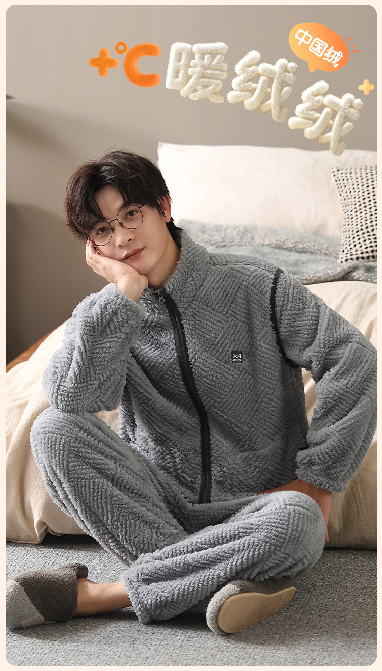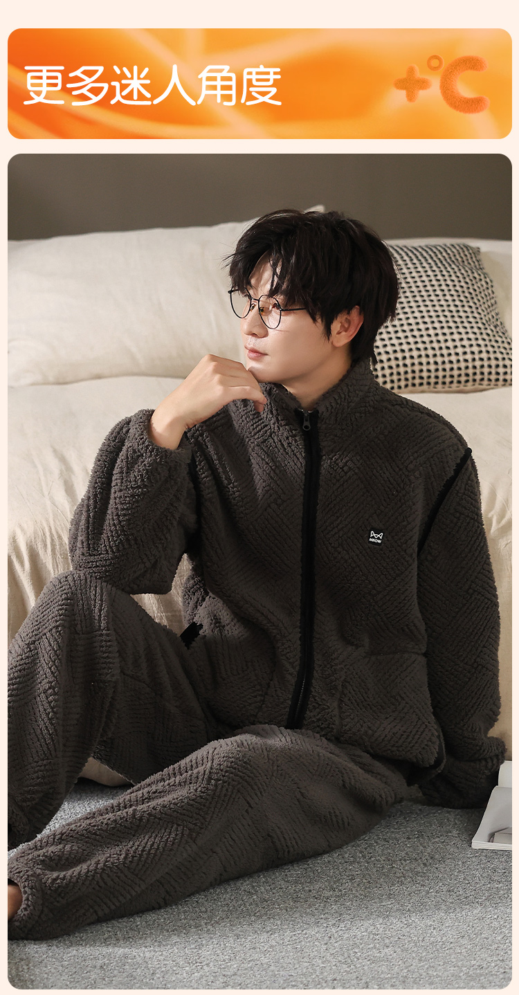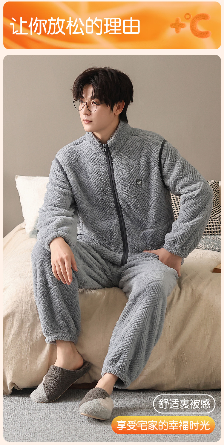 【L-3XL】【猫人】男士冬款双面绒家居服套装