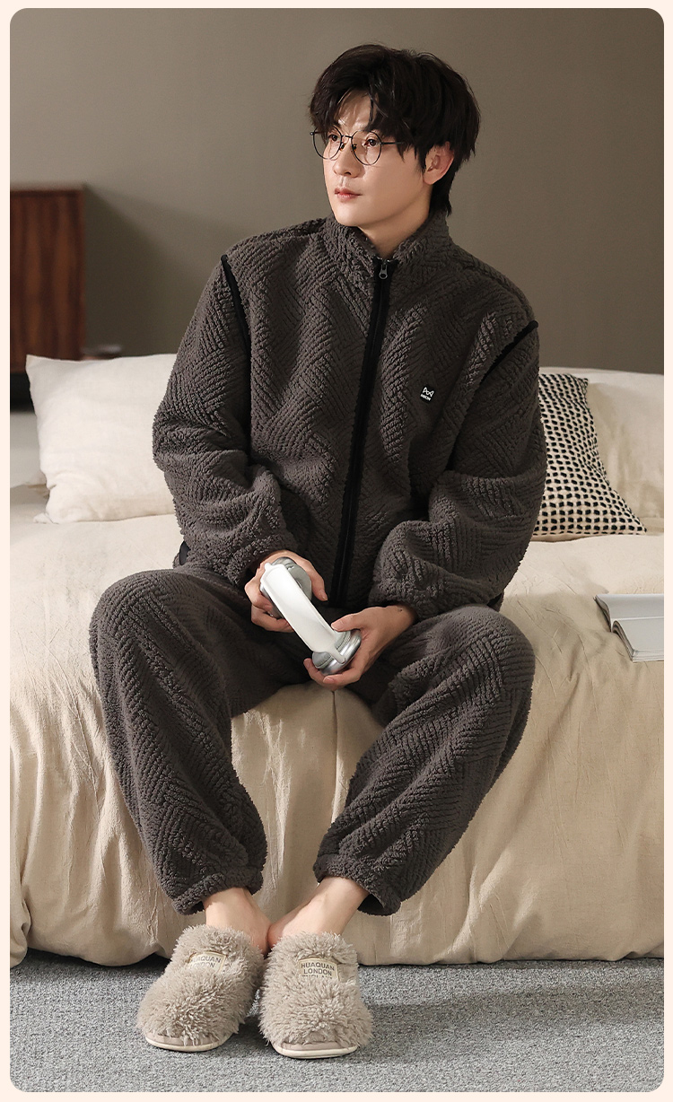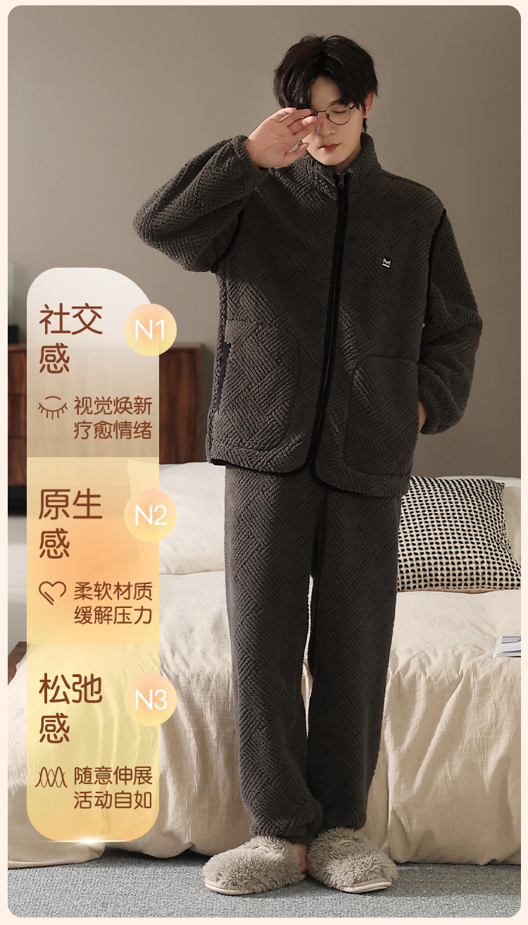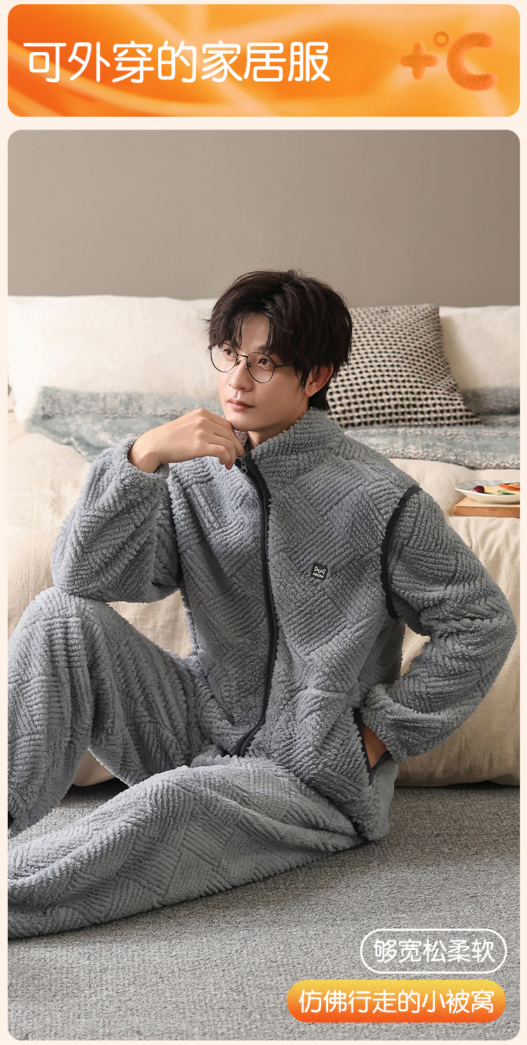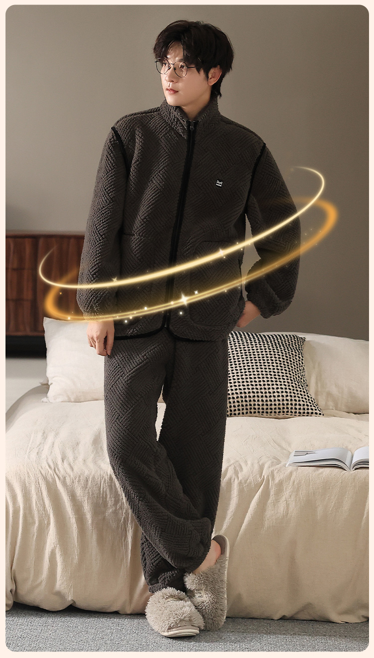 【L-3XL】【猫人】男士冬款双面绒家居服套装