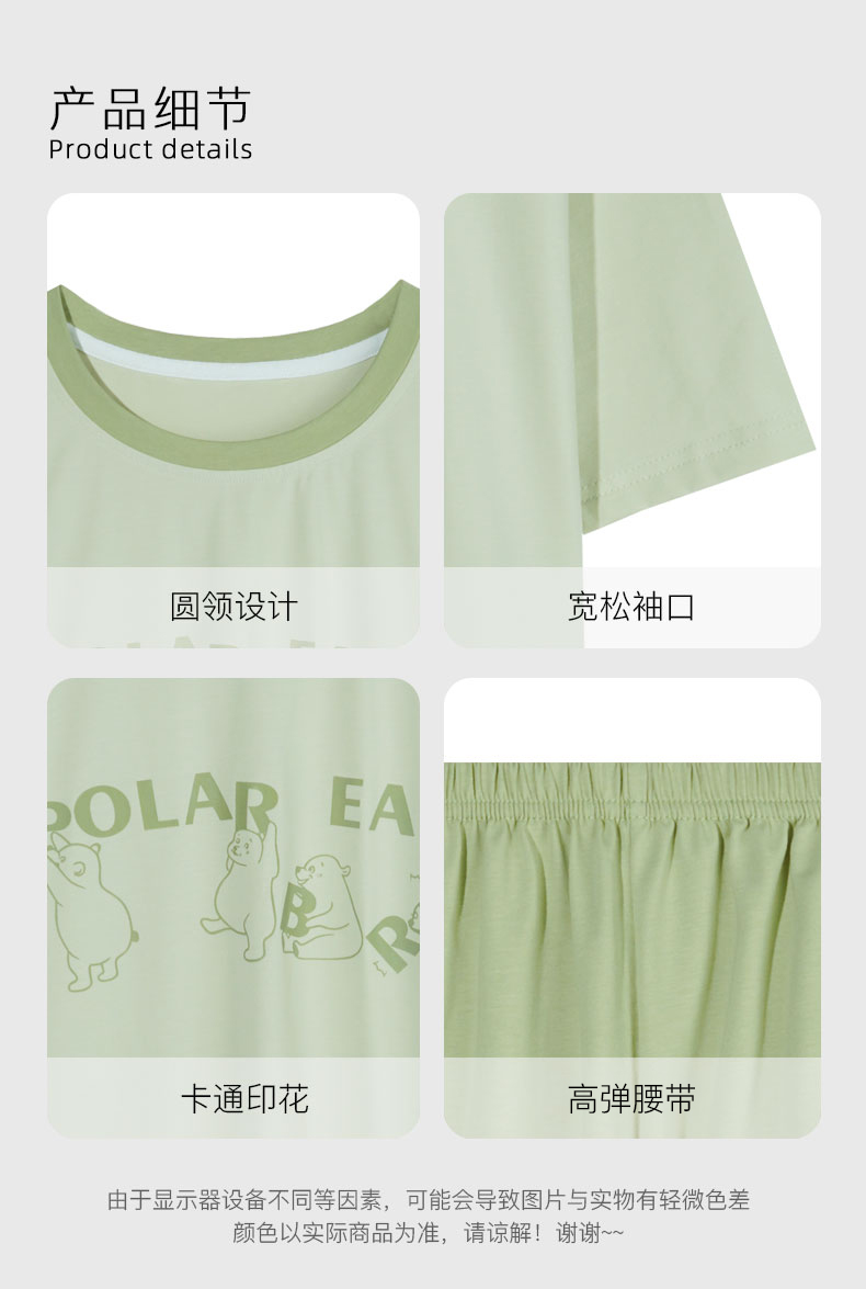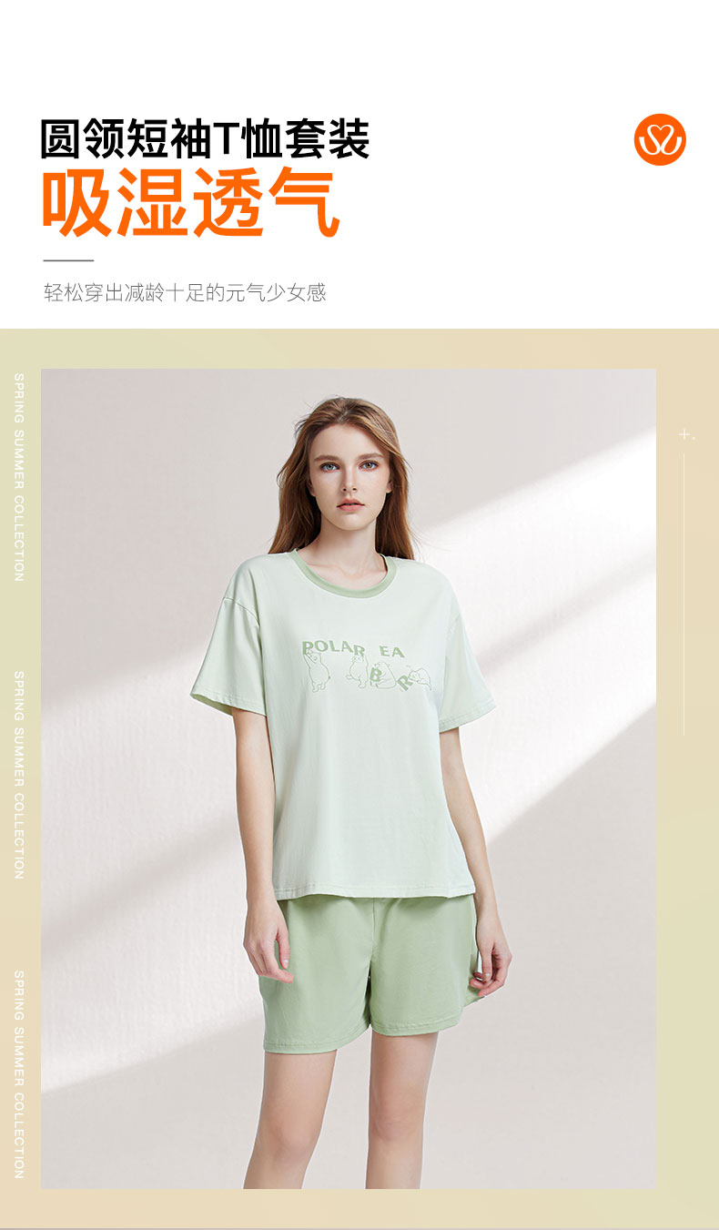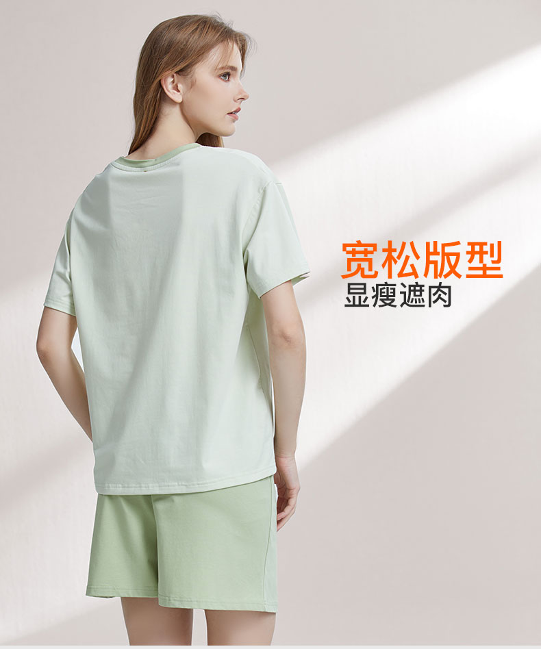 【79元超值新品】【秀黛】女圆领短袖套装棉混纺挺括撞色萌宠元气少女感女士夏季睡衣家居服W2551065T【门店同款】