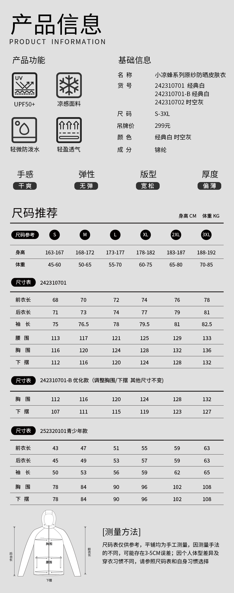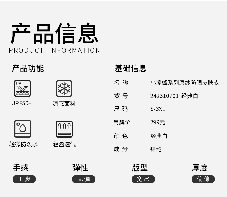 小李子蜂锐小凉蜂系列原纱防晒衣皮肤衣户外运动透气薄款