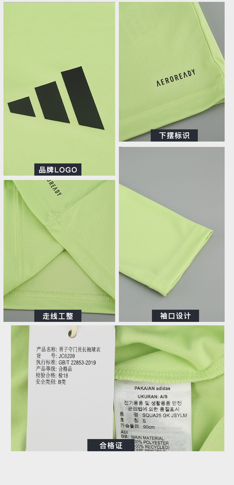 小李子ADIDAS阿迪达斯足球运动训练守门员门将长袖球衣成人男JG1129