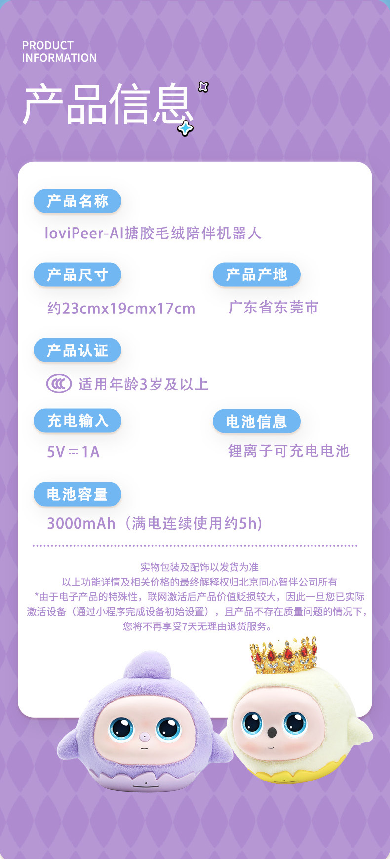 Lovipeer AI陪伴机器人 AI搪胶毛绒陪伴机器人 智能交互 Deepseek 豆包